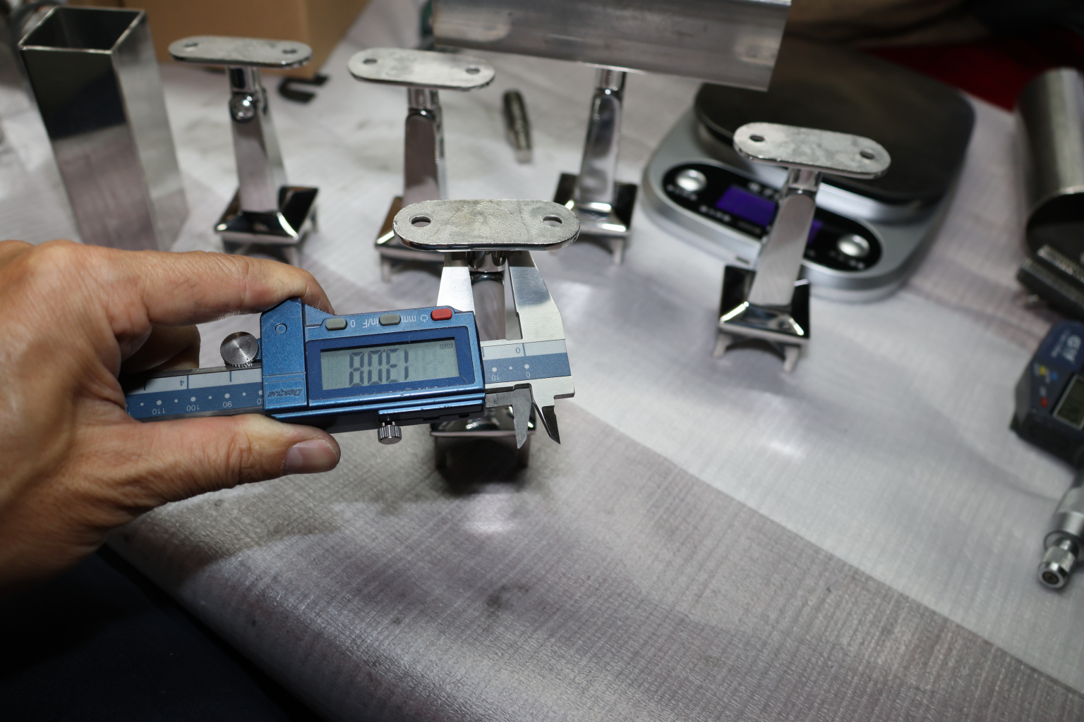 Наконечник на стойку из профильной трубы 40х40 мм, с регулируемым ложементом под плоскость, литой, полированный, нержавеющий AISI 304 k222-3