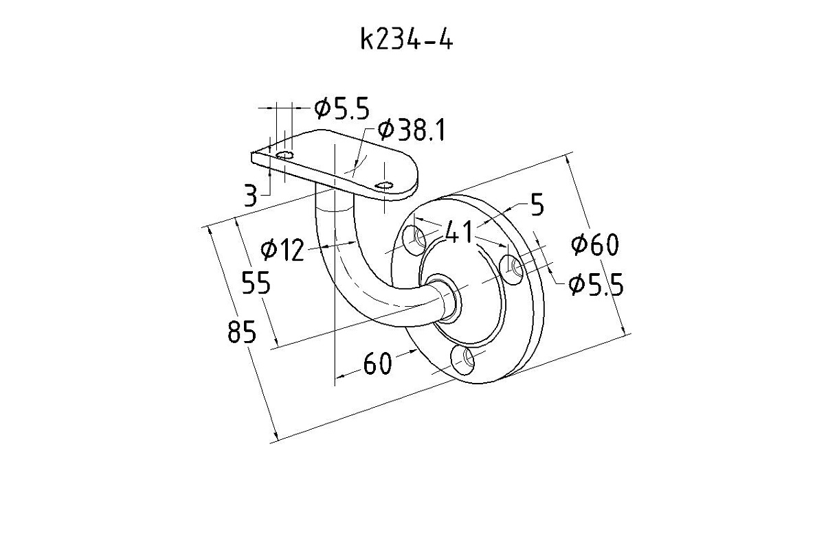 Держатель выносной с обхватом для трубы Ø38.1 мм, полированный, сварной, (AISI 304) k256