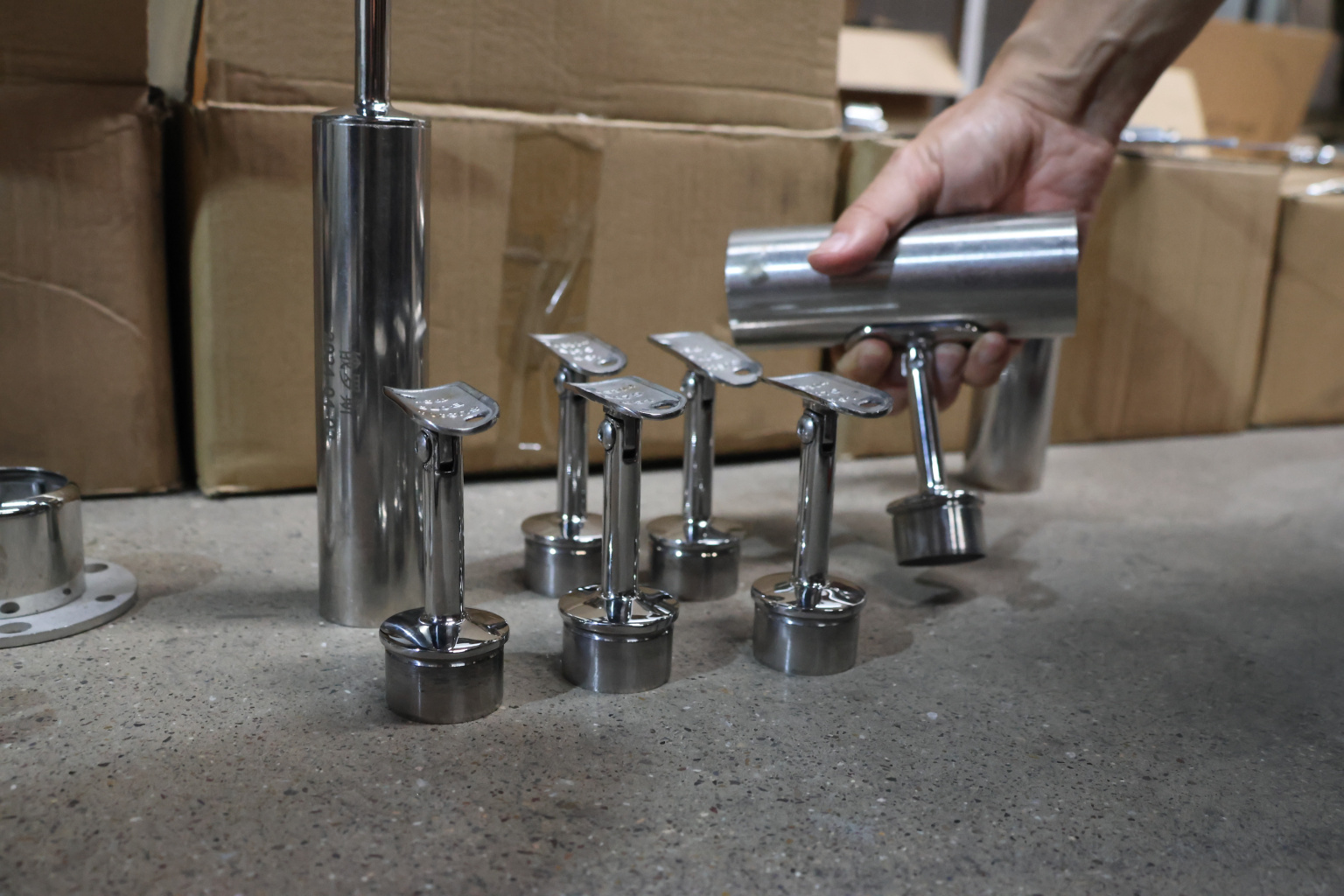 Предназначен для стойки Ø38.1 мм (k819, k849) под поручень Ø38,1-42,4 мм. Деталь с регулируемым ложементом и отверстиями под саморезы. Можно крепить как на сварку, так и на специальный клей ( , ). На сегодняшний день это наиболее распространенный тип наконечников стоек, повсеместно используемый в монтаже ограждений.
