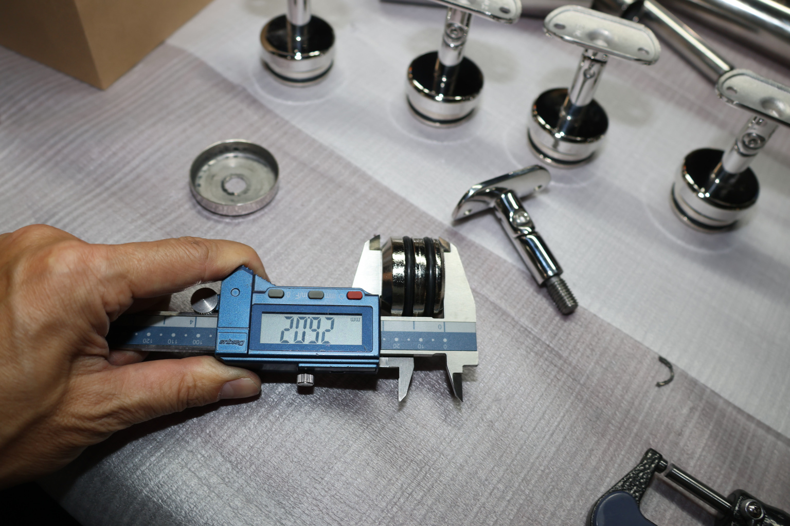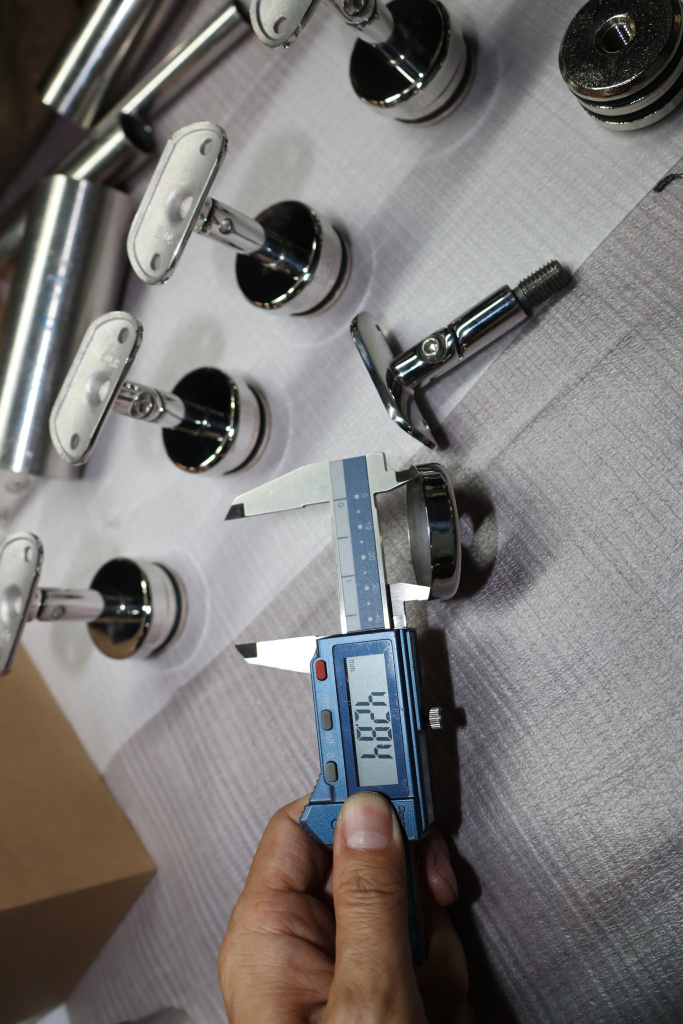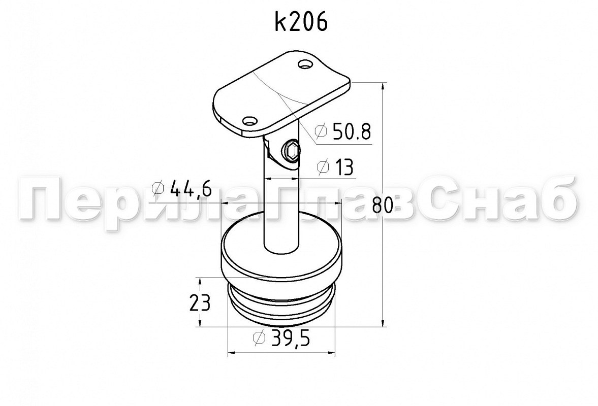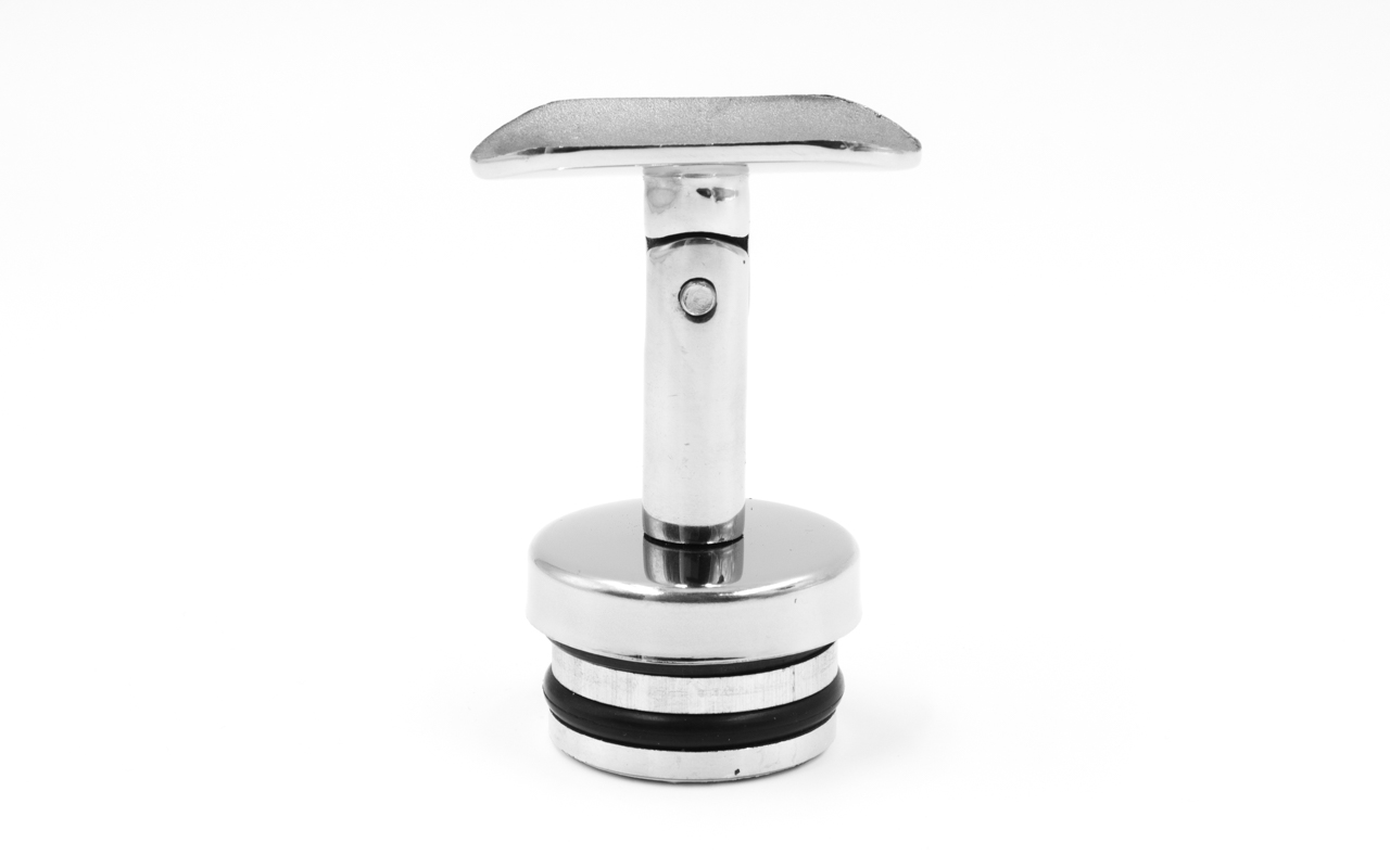 Наконечник палец с алюминиевой системой фиксации на стойке Ø42.4х1.5 мм, регулируемым ложементом под поручень Ø50.8 мм, полированный, литой, нержавеющий AISI 304 k206