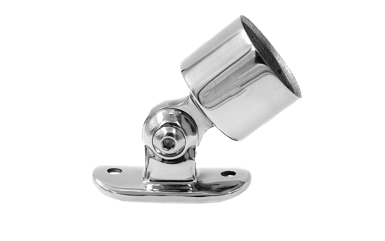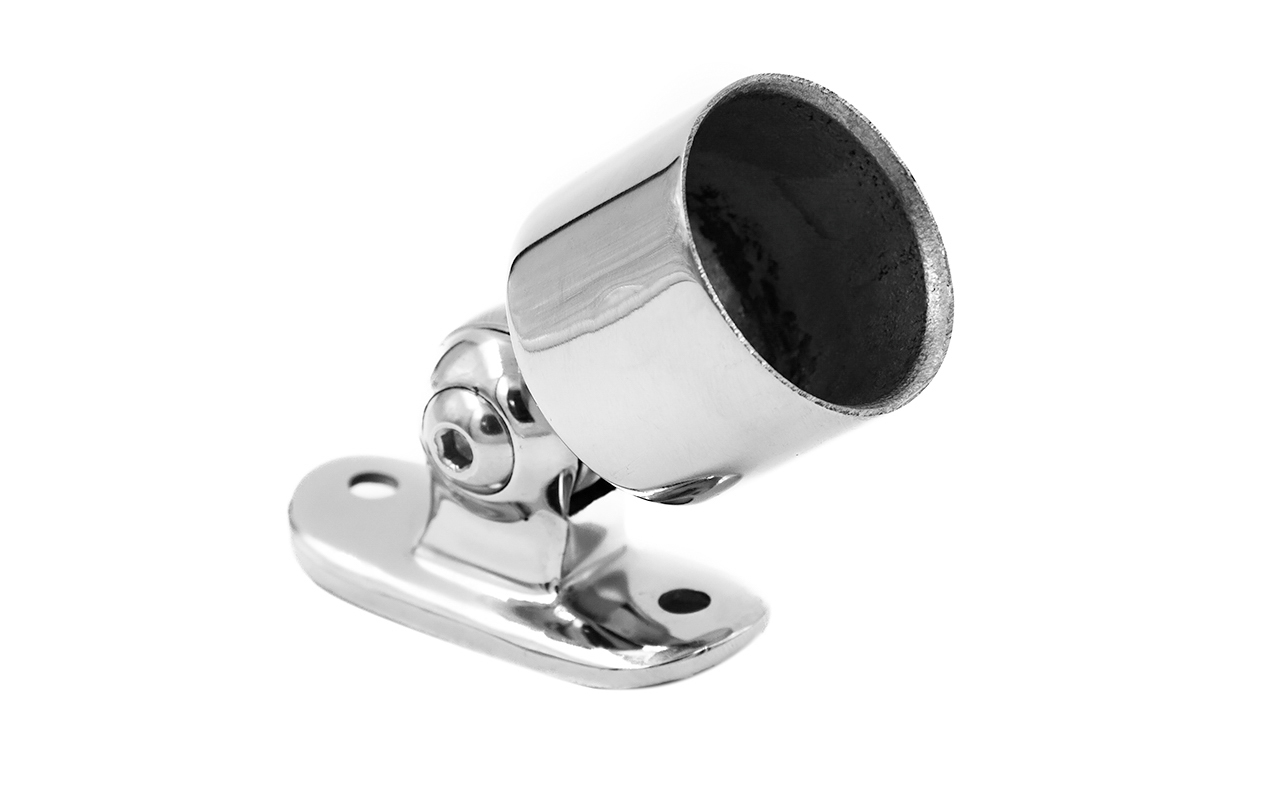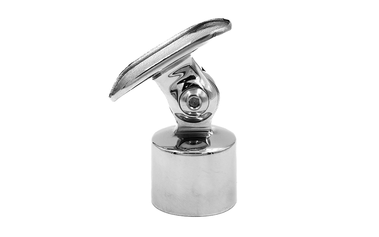 Наконечник наружный на стойку Ø25.4 мм, с регулируемым ложементом под трубу Ø38.1 мм, литой, полированный, нержавеющий AISI 304, k326