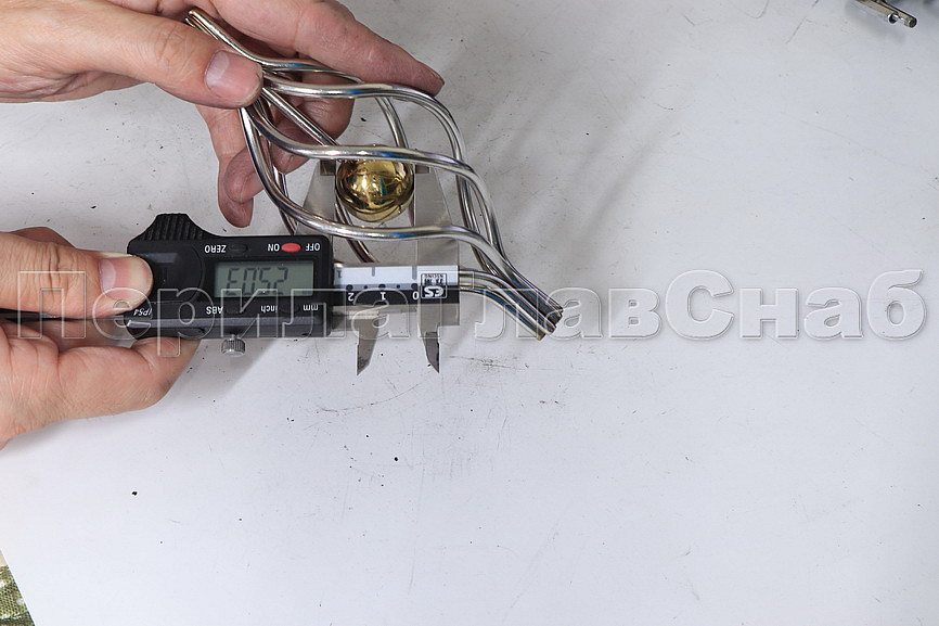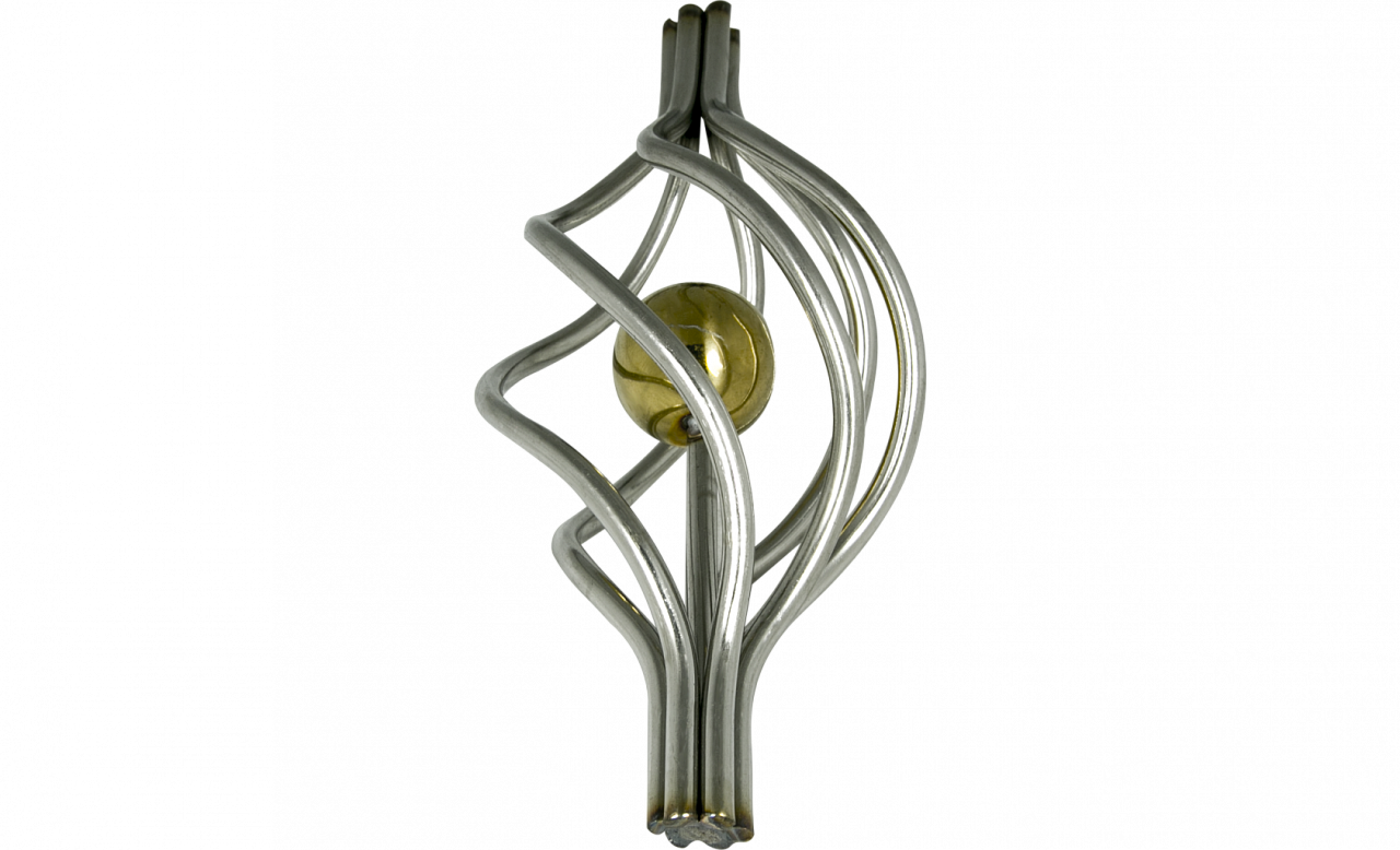 Декоративная вставка (корзинка) для стойки Ø25 мм, с золотым шаром. Деталь полированная, литая. Марка детали - AISI 304
