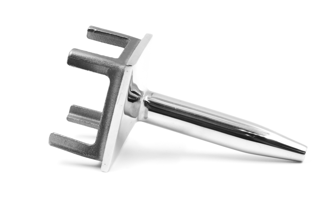 Наконечник палец с алюминиевой системой фиксации на стойке Ø38.1х1.5 мм, с не регулируемым ложементом 90° под поручень Ø50.8 мм, полированный, нержавеющий (AISI 304) k199