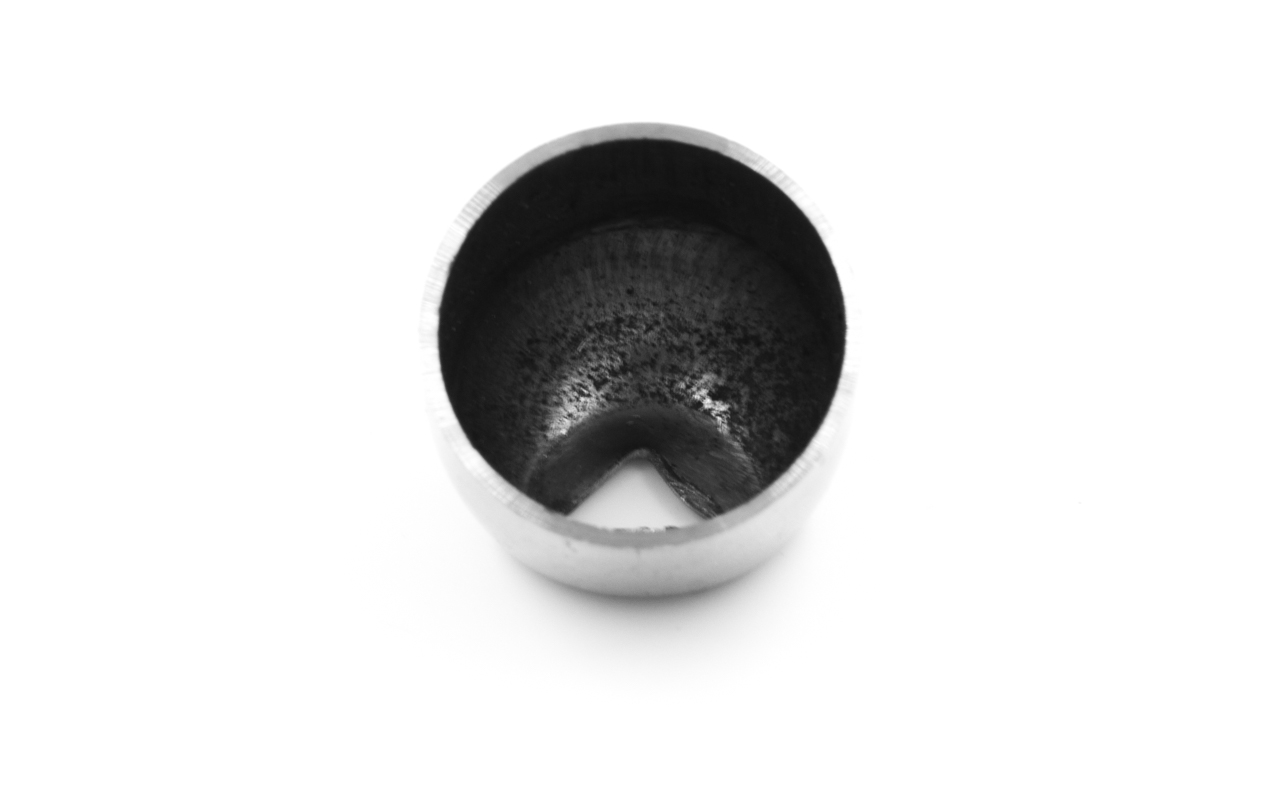Наконечник штампованный (СПС) косой 30° на трубу Ø19 мм, для поручня Ø38.1-50.8 мм. Деталь полированная 400 Grit, нержавеющая. Марка стали - AISI 304