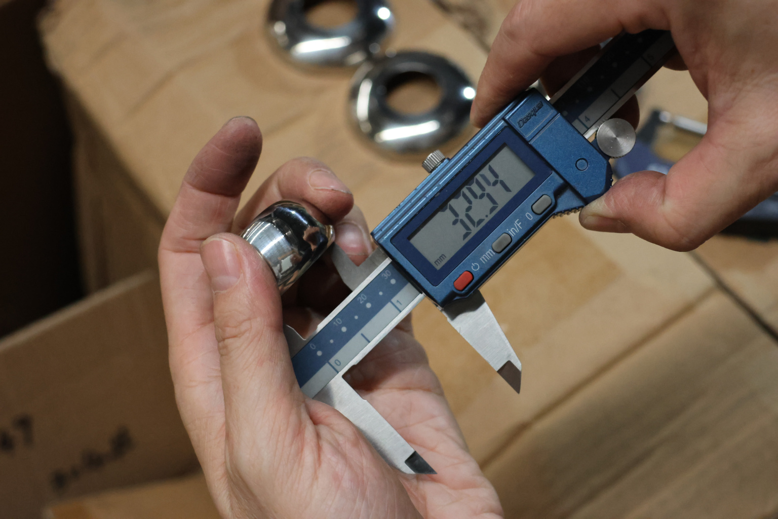 Наконечник штампованный (СПС) прямой 90° на трубу Ø32 мм, для поручня Ø38.1-50.8 мм, полированный, нержавеющий, AISI 304, k551