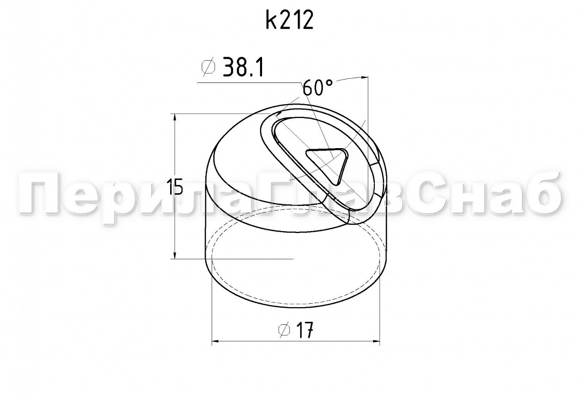 Наконечник штампованный (СПС) косой 30° на трубу Ø16 мм, для поручня Ø38.1 мм, полированный, нержавеющий, (AISI 304) k212