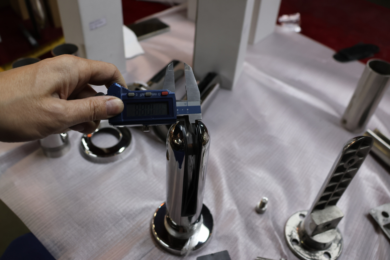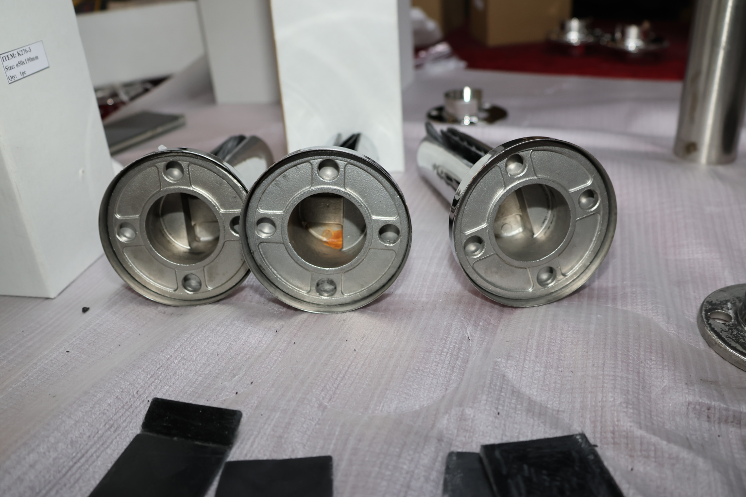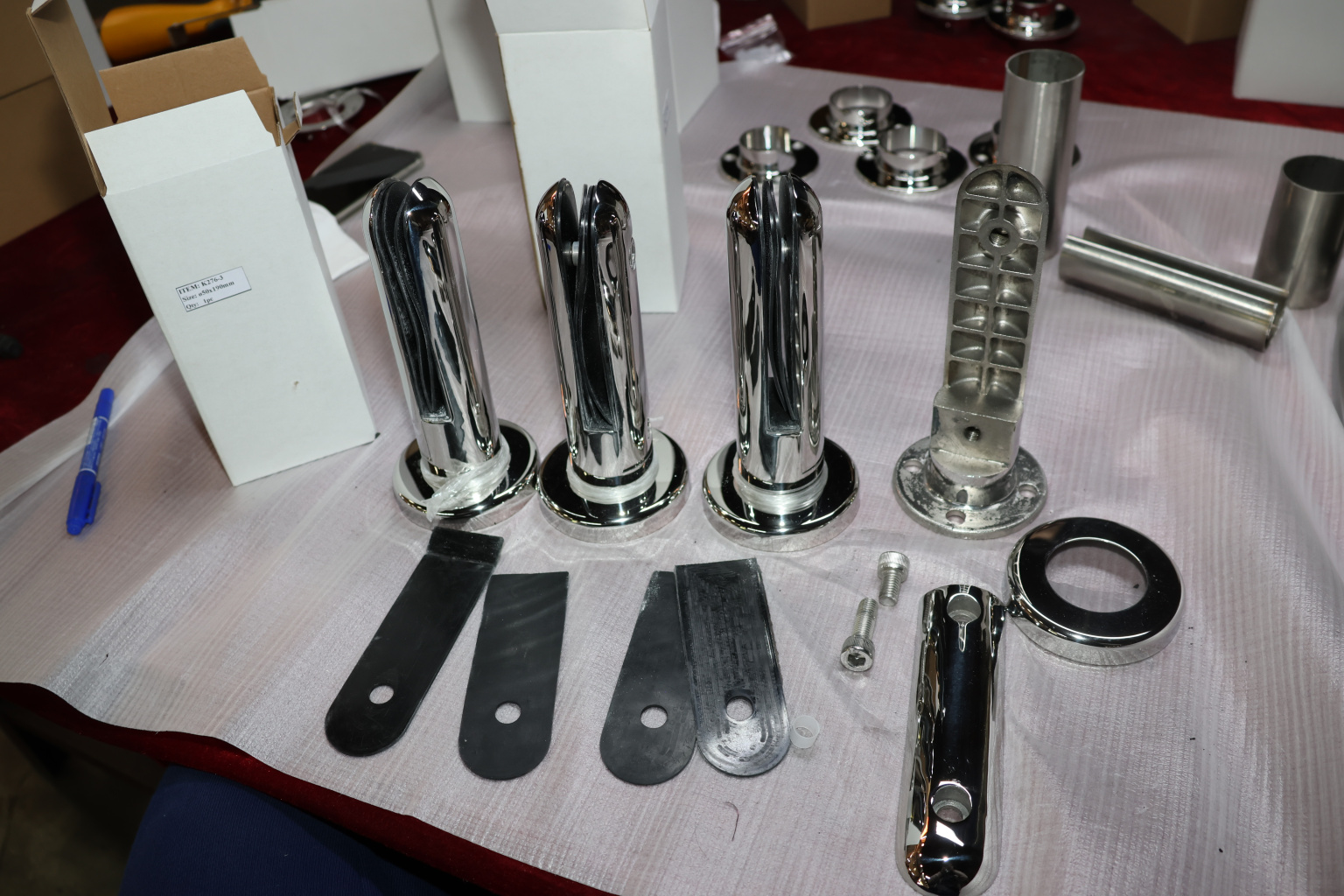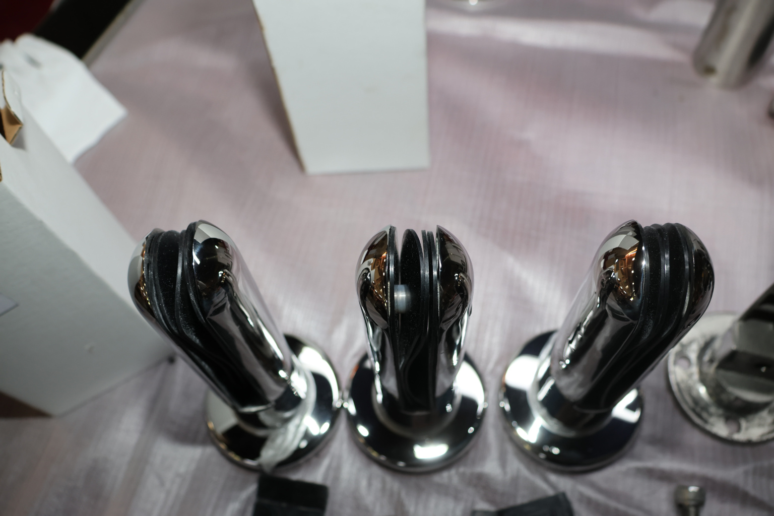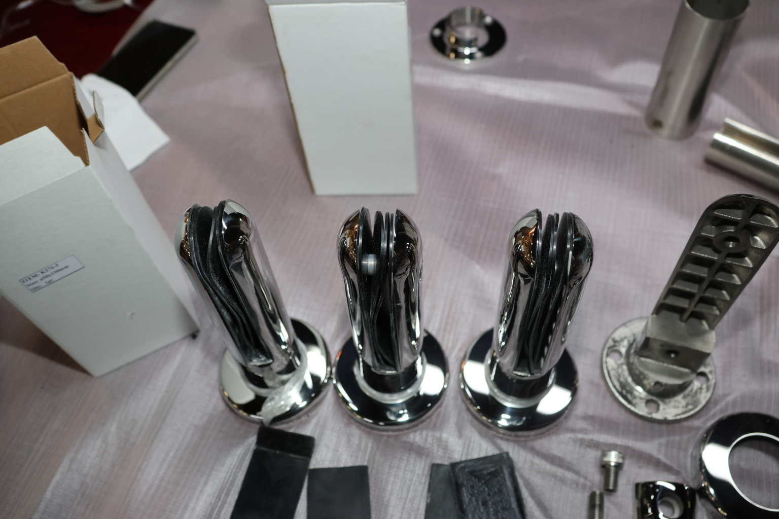 Стеклодержатель Ø50х10х18, шпилька М16х205 мм, для стекла 8-40 мм, AISI (201), с возможностью регулировки выноса до 65 мм, для торцевого крепления стекла, полированный, литой k277-3 купить в Волгограде