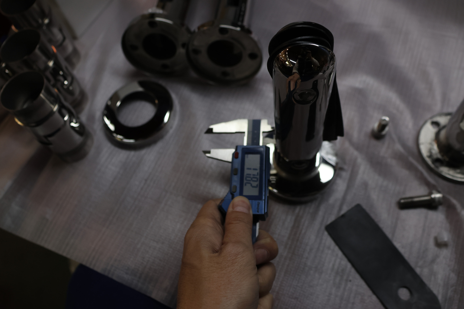 Стеклодержатель Ø50х10х18, шпилька М16х205 мм, для стекла 8-40 мм, AISI (201), с возможностью регулировки выноса до 65 мм, для торцевого крепления стекла, полированный, литой k277-3