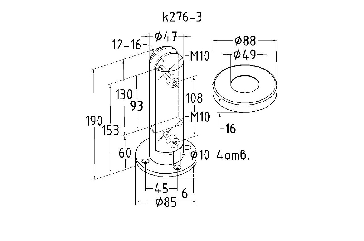 Стеклодержатель литой напольный, круглый, для стекла 12-16  мм, полированный (AISI 304) k176-2 купить в Волгограде