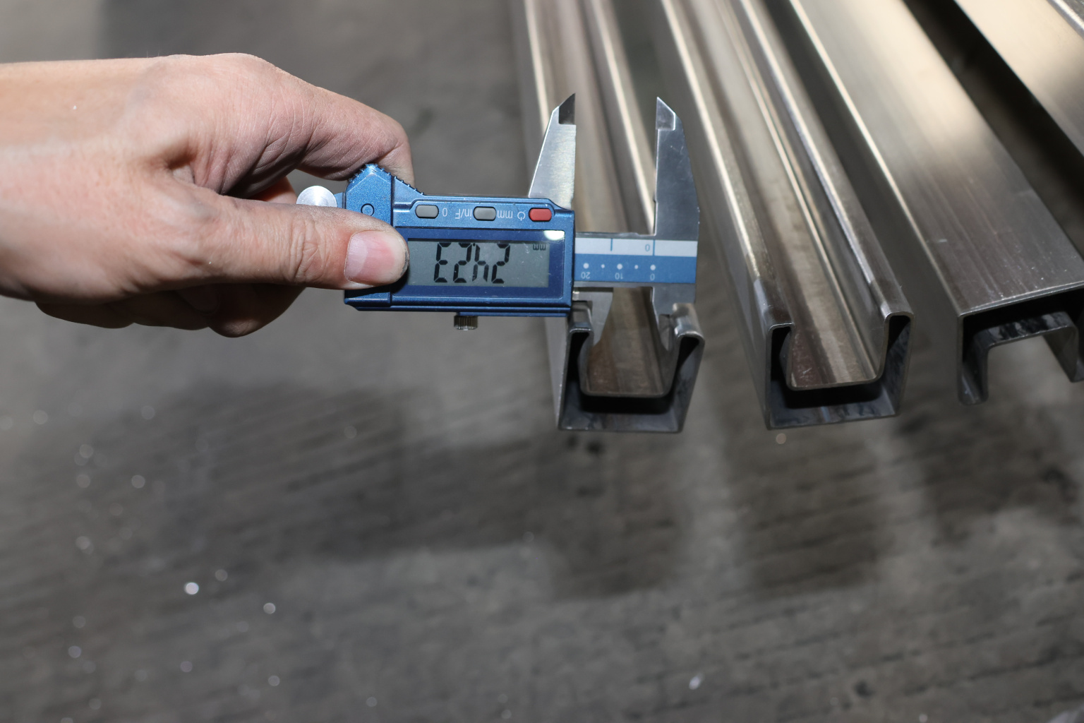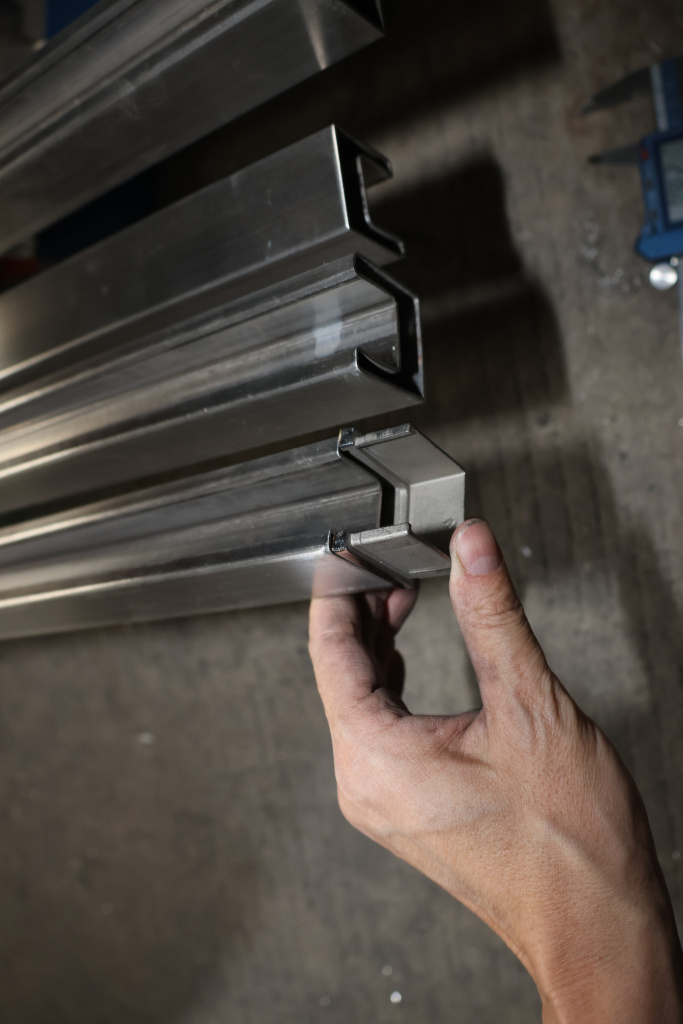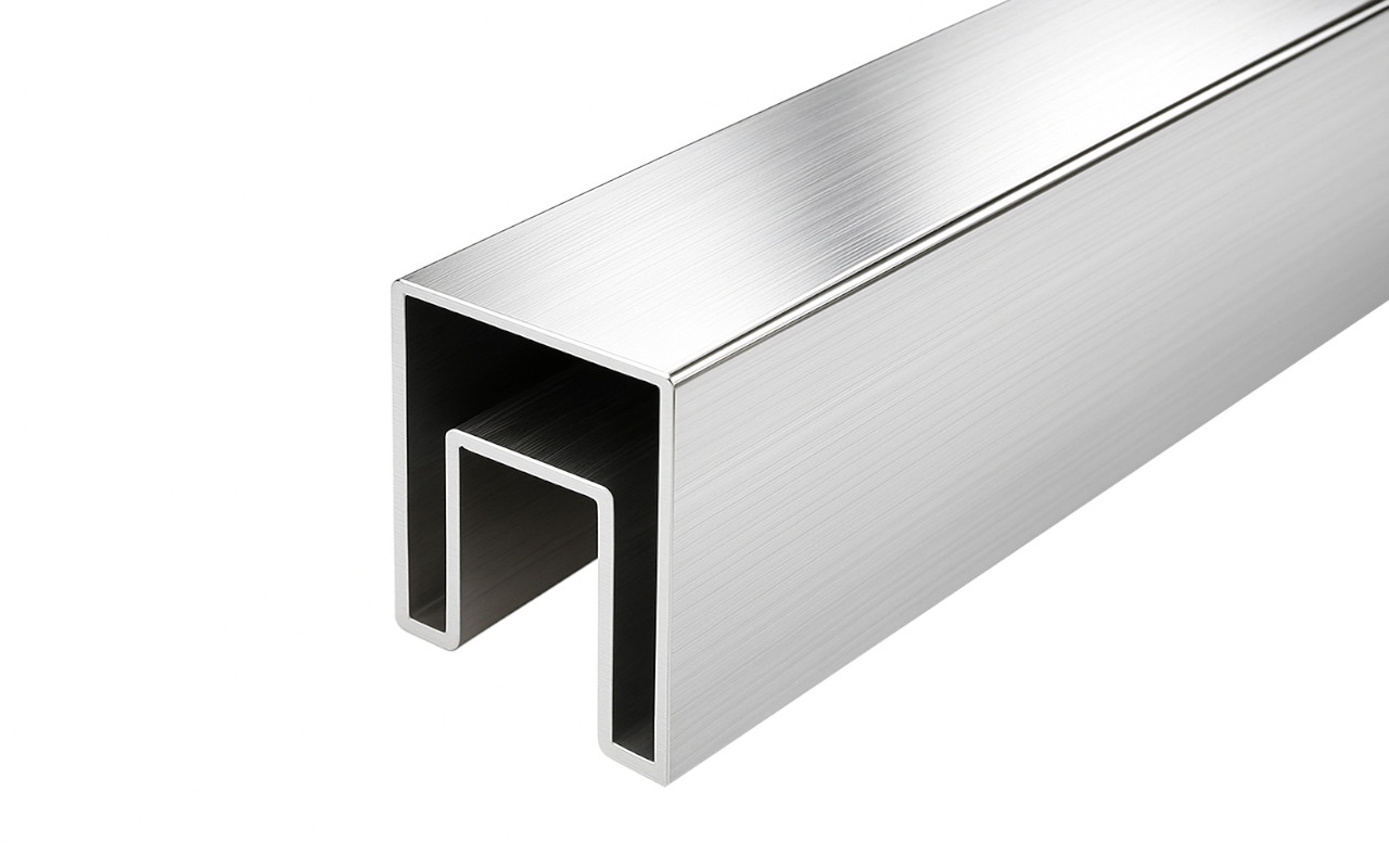 Труба 40х40 мм с пазом 24 х 24 под стекло, AISI 304 шлифованная k856-2
