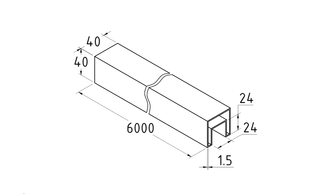 Труба 40х40 мм с пазом 24 х 24 под стекло.