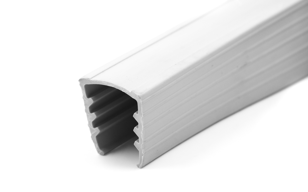 Уплотнитель изготовлен из специального EPDM (Этилен-пропиленовый каучук). Он имеет превосходную термо- и износостойкость, также устойчив в агрессивных средах, обладают хорошими диэлектрическими свойствами. При эксплуатации поручень с таким уплотнителем не болтается и жёстко сидит на стекле. Не рекомендуется хранение в холоде