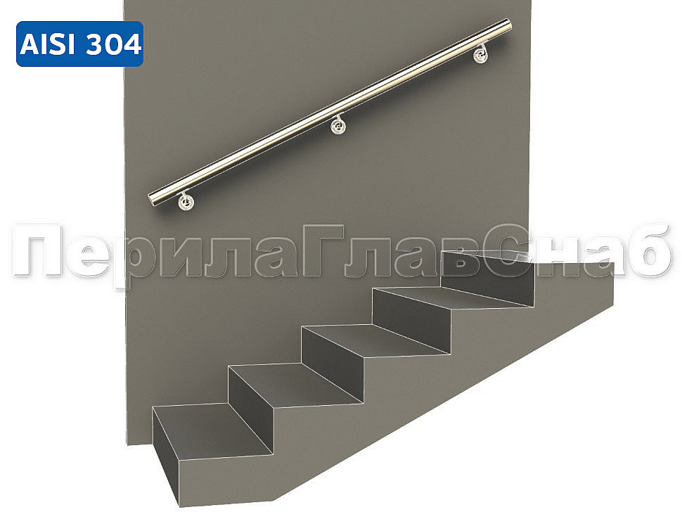 Готовый пристенный поручень с 4 держателями, длина 3300 мм (AISI 304) k730-33 купить в Волгограде