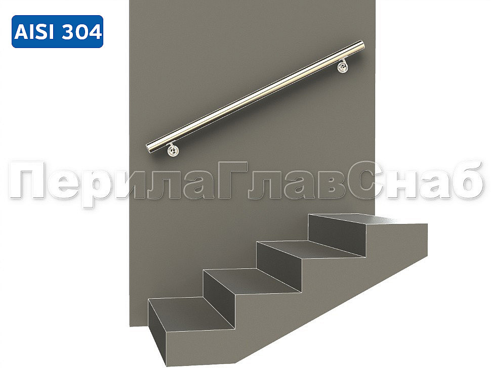 Готовый пристенный поручень с двумя держателями, длина 1300мм (aisi 304)