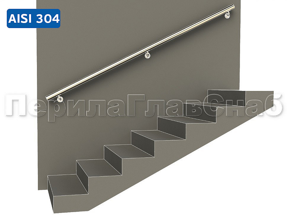 Готовый пристенный поручень с 4 держателями, длина 3300 мм (AISI 304) k730-33 купить в Волгограде