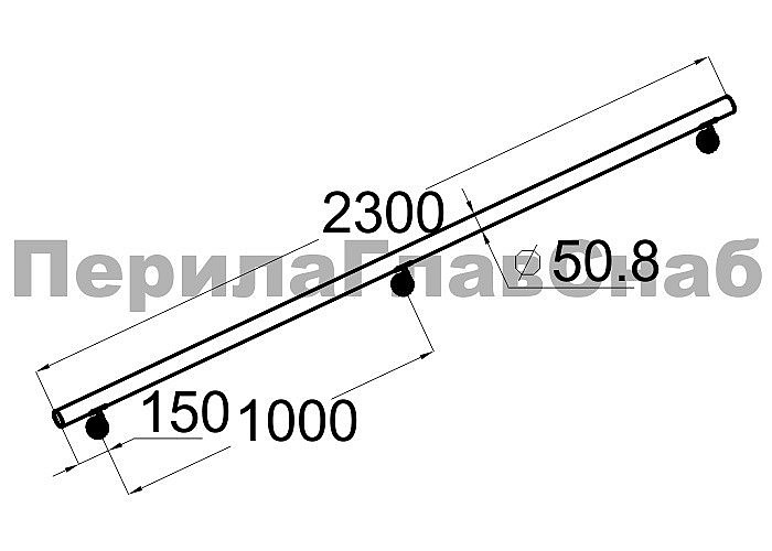 Готовый пристенный поручень с тремя держателями, длина 2300 мм (AISI 304) k730-23