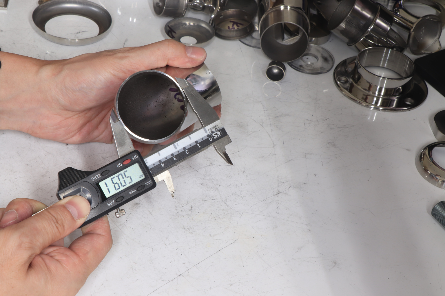 3. Вывести в ровную, гладкую поверхность место стыковки поручня с отводом.