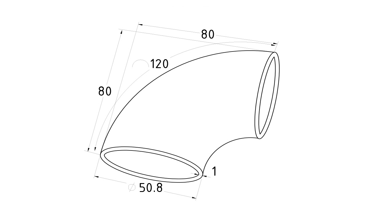 Отвод поручня под сварку для Ø50.8х1.0 мм, полированный 400 Grit, AISI 201 k021-7