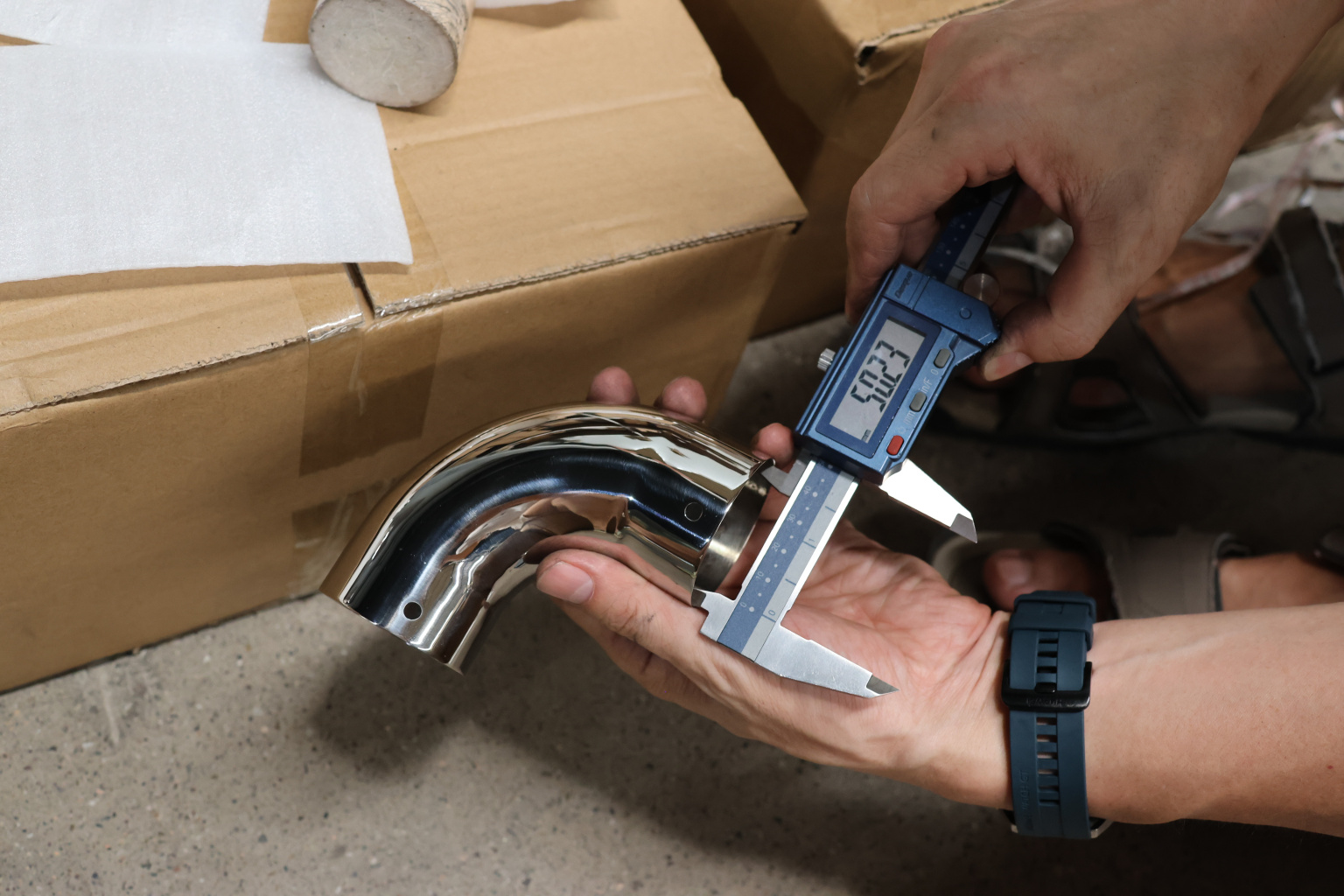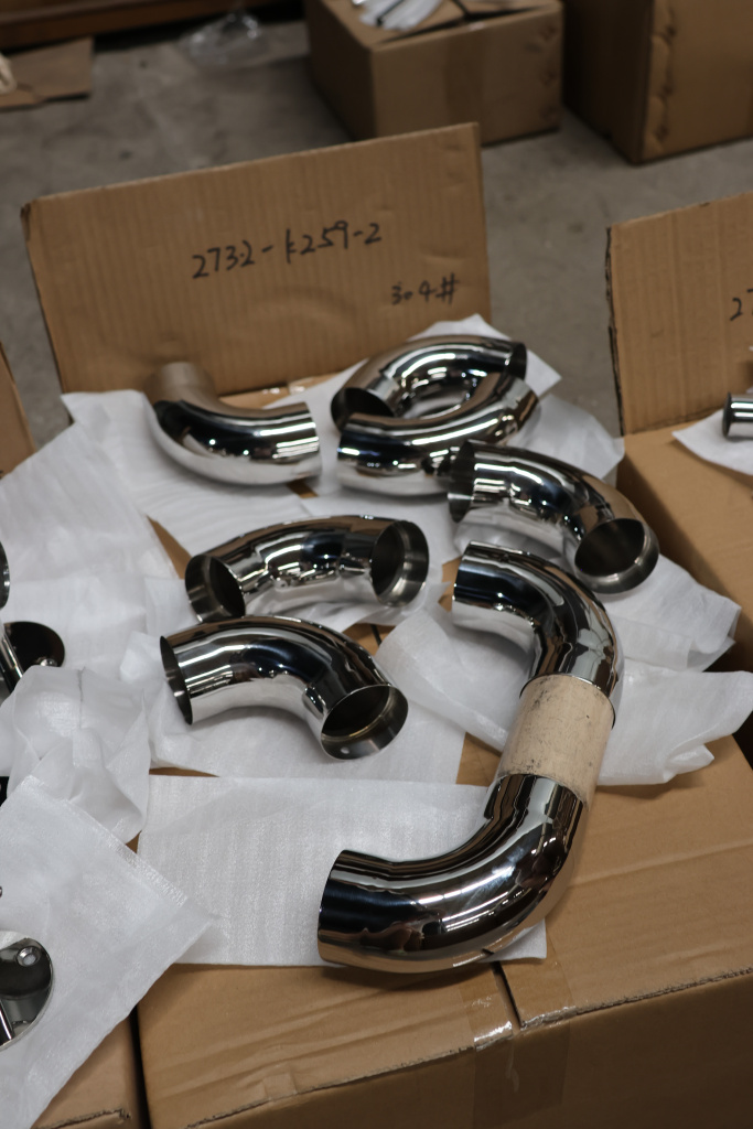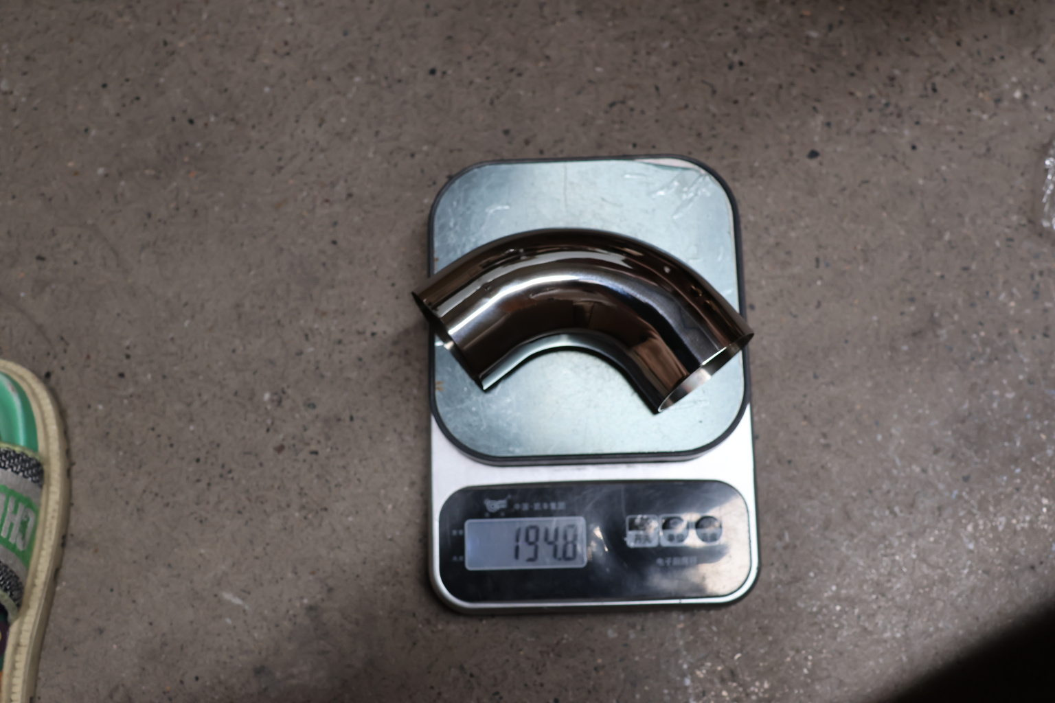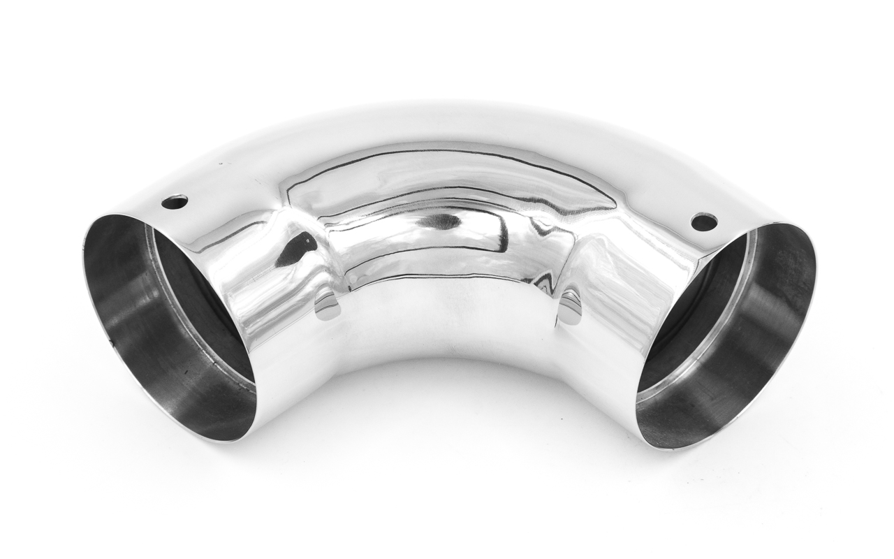 Поворот 90 градусов для круглого пластикового поручня. Деталь полированная, литая, марка стали - AISI 304