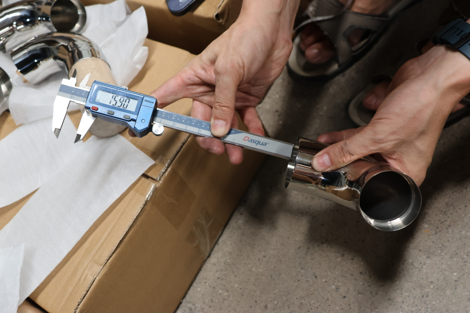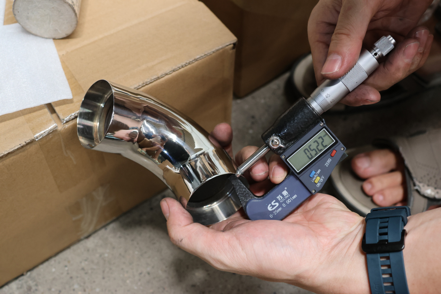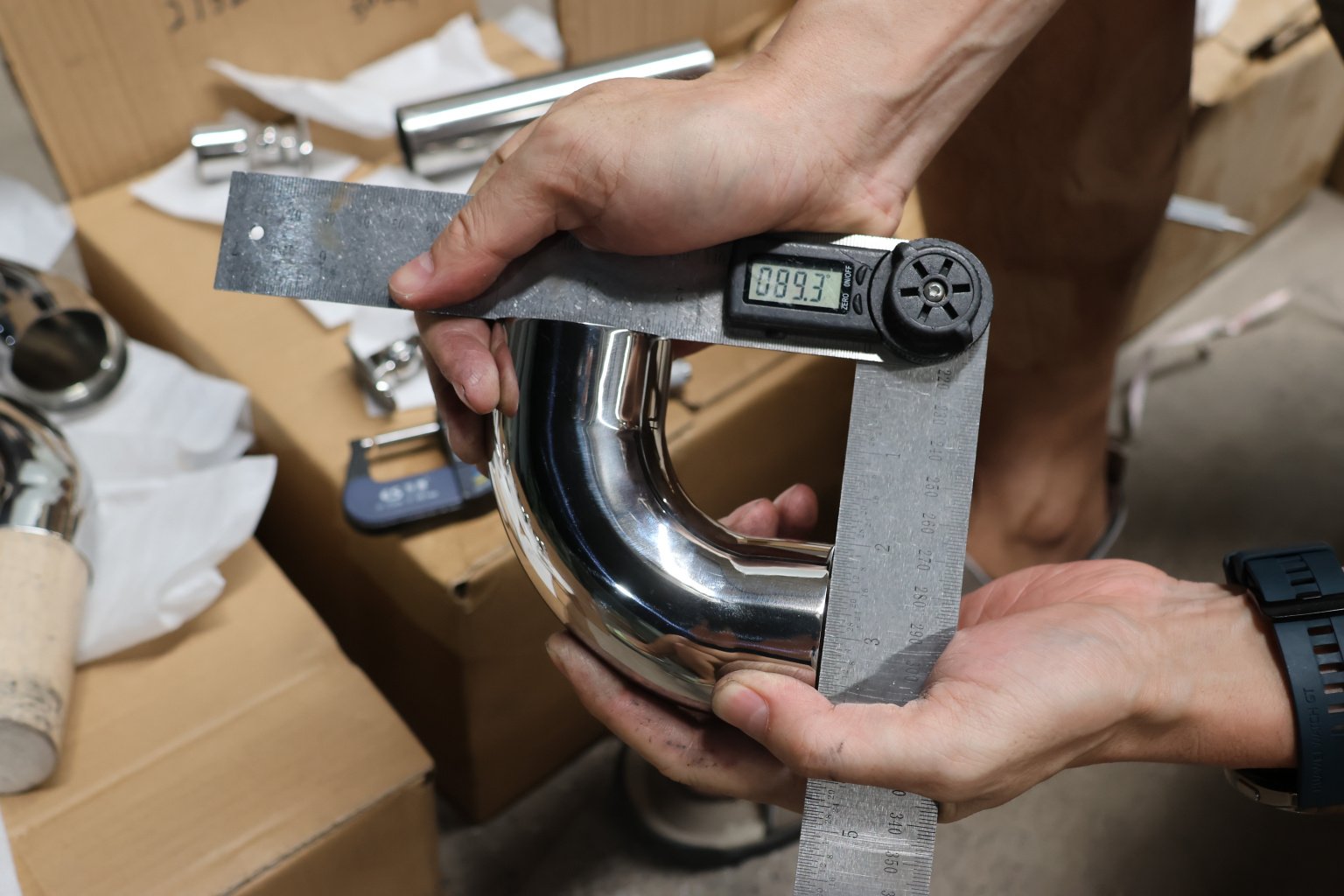 Поворот 90 градусов для круглого пластикового поручня. Деталь полированная, литая, марка стали - AISI 304