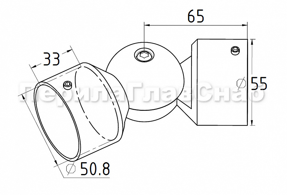 Поворот литой, внешний, регулируемый, "шар", под Ø50.8 мм, полированный AISI 304 k262