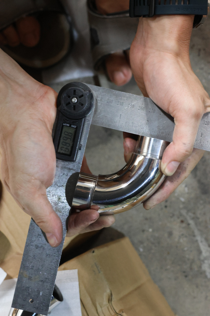 Отвод под поручень диаметром Ø38.1х1.5 мм, 90°. Деталь литая, полированная 600Grit, со вставками. Марка стали - AISI 201