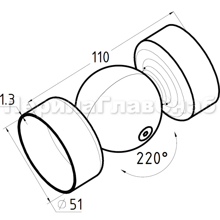 Поворот деревянного поручня, шаровый под Ø50.8 мм