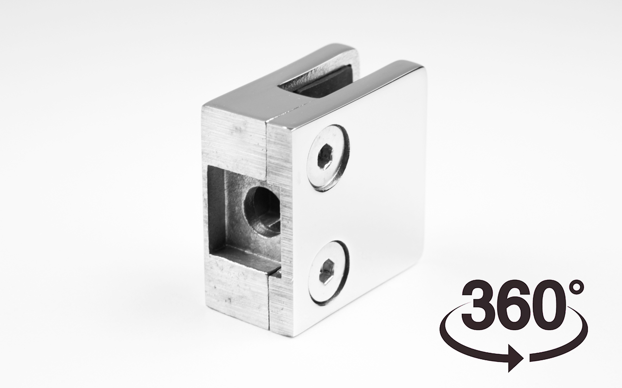Стеклодержатель литой под стекло 8 мм (4+4 мм), под стойку Ø38.1 мм 40х22х49, полированный (AISI 304) k001-4