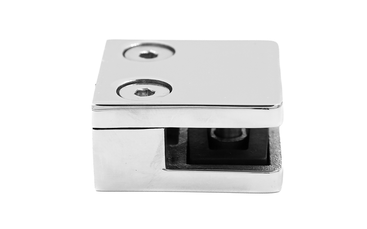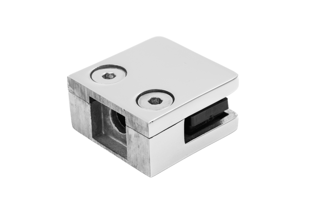 Стеклодержатель штампованный  под стекло 8 мм (4+4 мм), квадратный, под стойку Ø38.1 мм (40х24х48), полированный (AISI 304) k351 купить в Волгограде