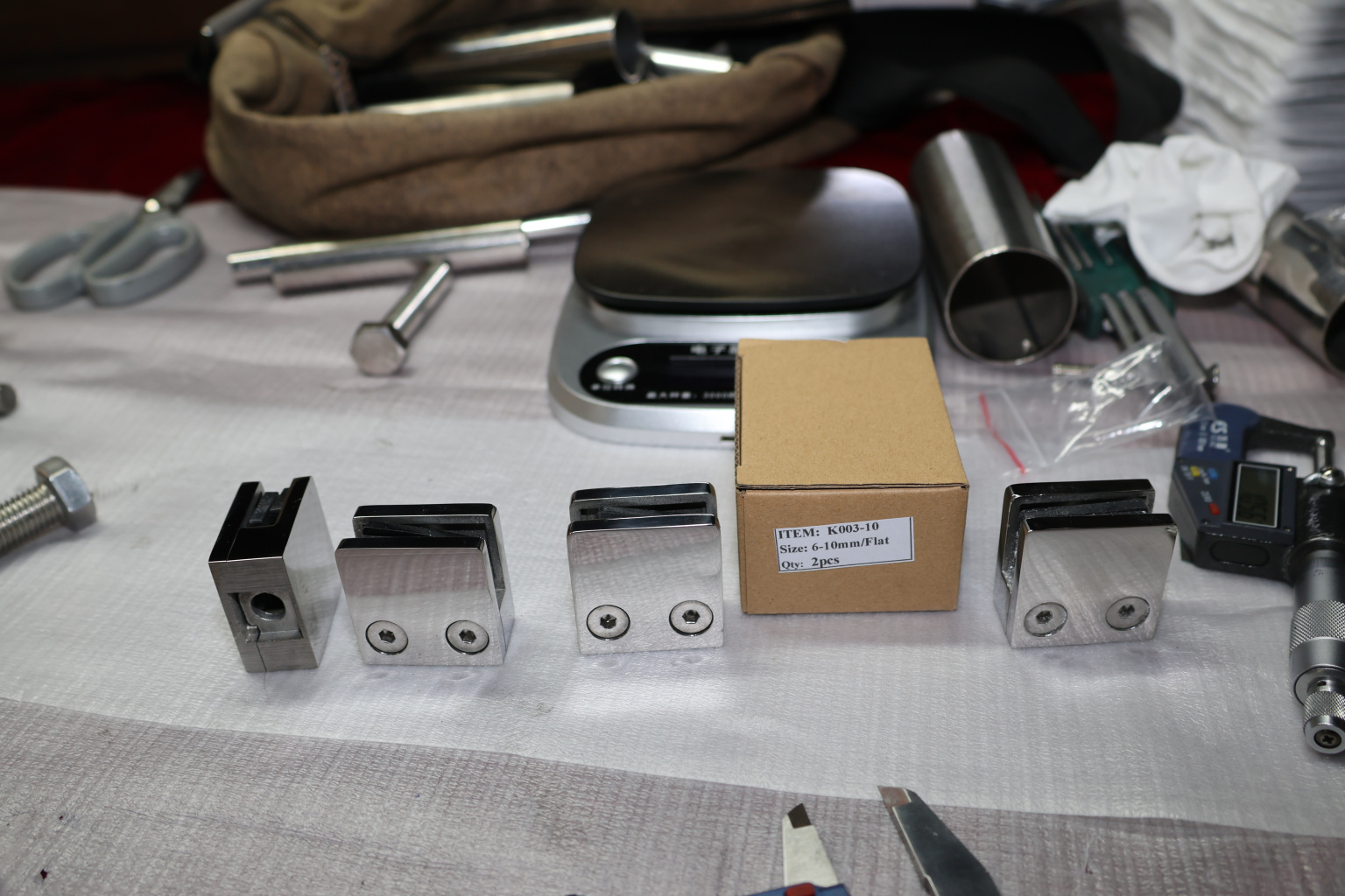 k003-10 стеклодержатель литой под стекло 8-10 мм, 4+4 мм. На плоскость 41х22х42, полированный. Марка стали -  AISI 304