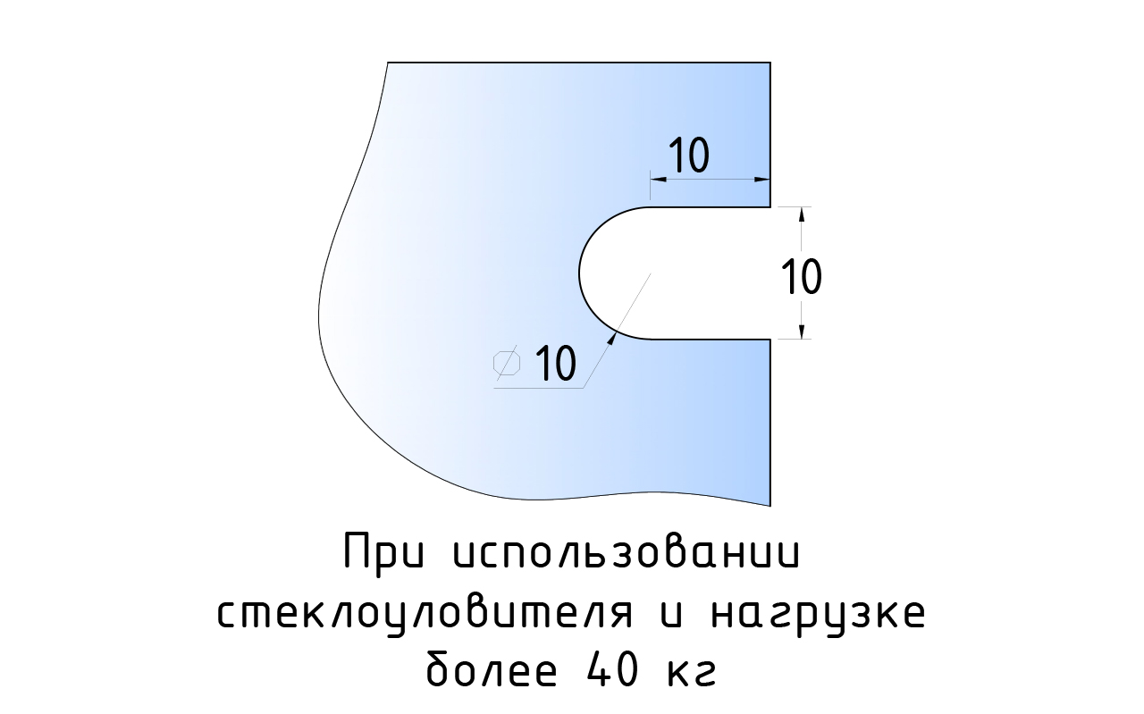 Предназначен для установки  на плоскость самосборного или сварного ограждения. Стеклодержатель подготовлен для зажима стекла толщиной  8-10 мм и для триплекса 4+4 мм. В комплект входят дополнительные вставки под стекло 8 мм, 4+4 мм. Если у вас стекло толщиной 10 мм, то  дополнительные вставки не используют. Также в комплект входит стеклоуловитель  для стекла, данный стеклоуловитель, при монтаже можно не использовать. По умолчанию, литой стеклодержатель рассчитан на нагрузку до 40 кг, стекло со временем не поползет. Если вам необходимо увеличить нагрузку на стеклодержатель  до 50 кг, то в таком случае, используют стеклоуловитель и в стекле согласно чертежу, делают отверстие.  Данный стеклодержатель  используют под плоскость.