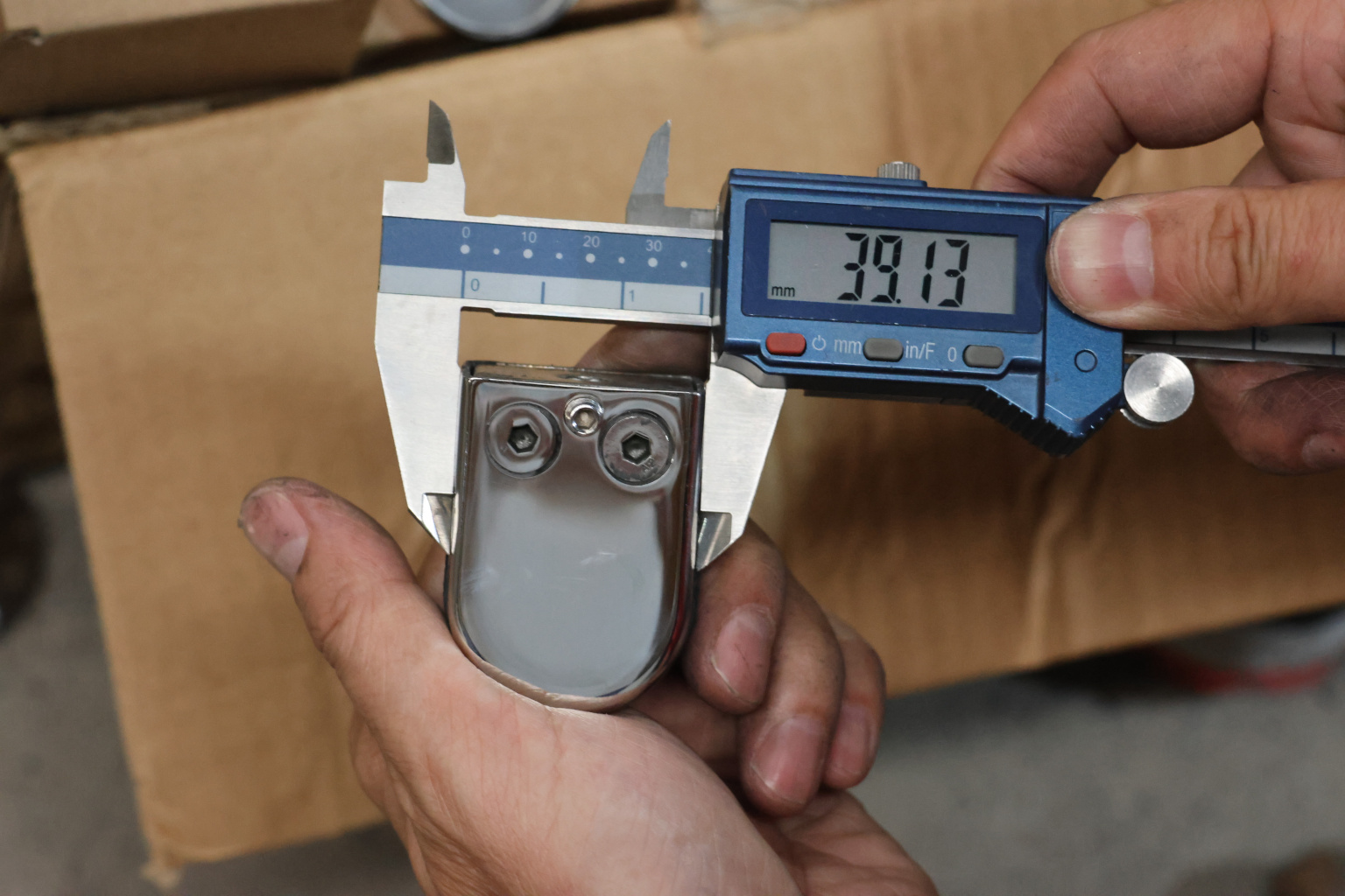 k539-2 стеклодержатель штампованный под стекло 8 мм, на плоскость 39х24х55 полированный (AISI 304). Можно использовать совместно с k218-3.