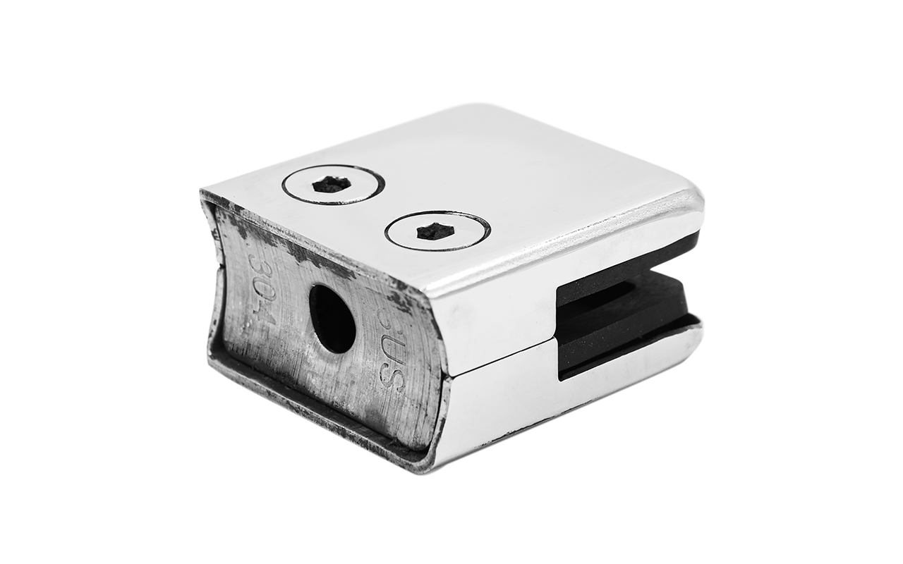 Стеклодержатель литой с вставками под стекло 8-10 мм, 4+4 мм, на плоскость 40х22х50, полированный (AISI 304) k002-10 купить в Волгограде