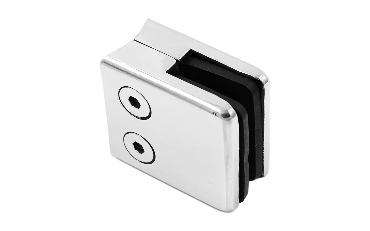 Стеклодержатель штампованный  под стекло 8 мм (4+4 мм), квадратный, под стойку Ø38.1 мм (40х24х48), полированный (AISI 304) k351 купить в Волгограде