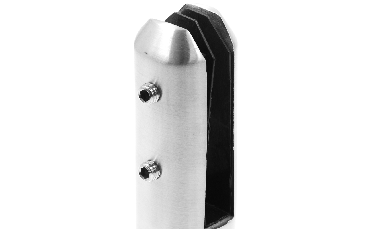 Стеклодержатель литой с вставками под стекло 8-10 мм, 4+4 мм, закругленный под стойку Ø38,1 мм (40х22х50), полированный, (AISI 304) k001-10 купить в Волгограде