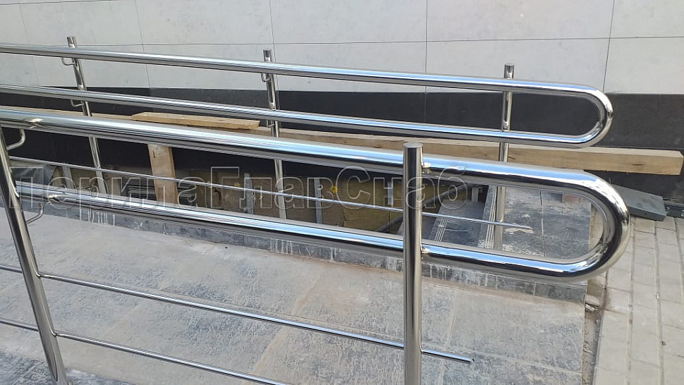 Cтойка для пандуса: под 2 поручня Ø38,1 мм для инвалидов, полированная, высота 900 мм (aisi 304)