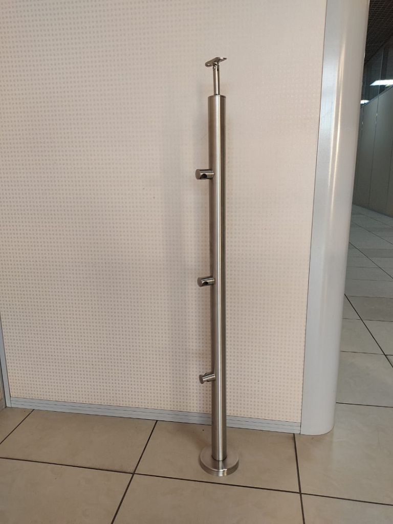 Стойка изготовлена на нашем производстве и готова к установке сразу после покупки. Используемая при изготовлении 304 марка стали позволяет применять данную стойку как внутри здания, так и на улице. Особенно это важно для людей, которым важно сделать свои ограждения в одном стиле как внутри здания, так и снаружи. Все элементы стойки приварены аргонной сваркой, благодаря чему фланец с 3-мя отверстиями для крепления в пол, ригеледержатели под трубу ф16мм и наконечник под трубу ф38-50 составляют единую конструкцию со стойкой. Сварные швы на балясине убраны и идеально заполированы,а балясина ничем не уступает ограждениям сделанным профессиональными бригадами. Любой человек сможет сделать монтаж имея только отвертку, клей( ф-1127, ф-1105) и саморезы( , , ) 3-хригельная балясина самая распространенная за счет сбалансированности дизайна, цены и обширного использования. Данную балясину используют во входной группе, на лестничных маршах общественных помещений и не редко ее применяют в частных домах, где ограничен бюджет, но нужно сделать устойчивое ограждение.