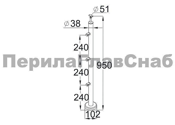 Стойка круглая Ø38.1: 3 ригеледержателя, шлифованная, высота 950мм (aisi 304). Данная стойка есть в полированном, т.е зеркальном исполнении -