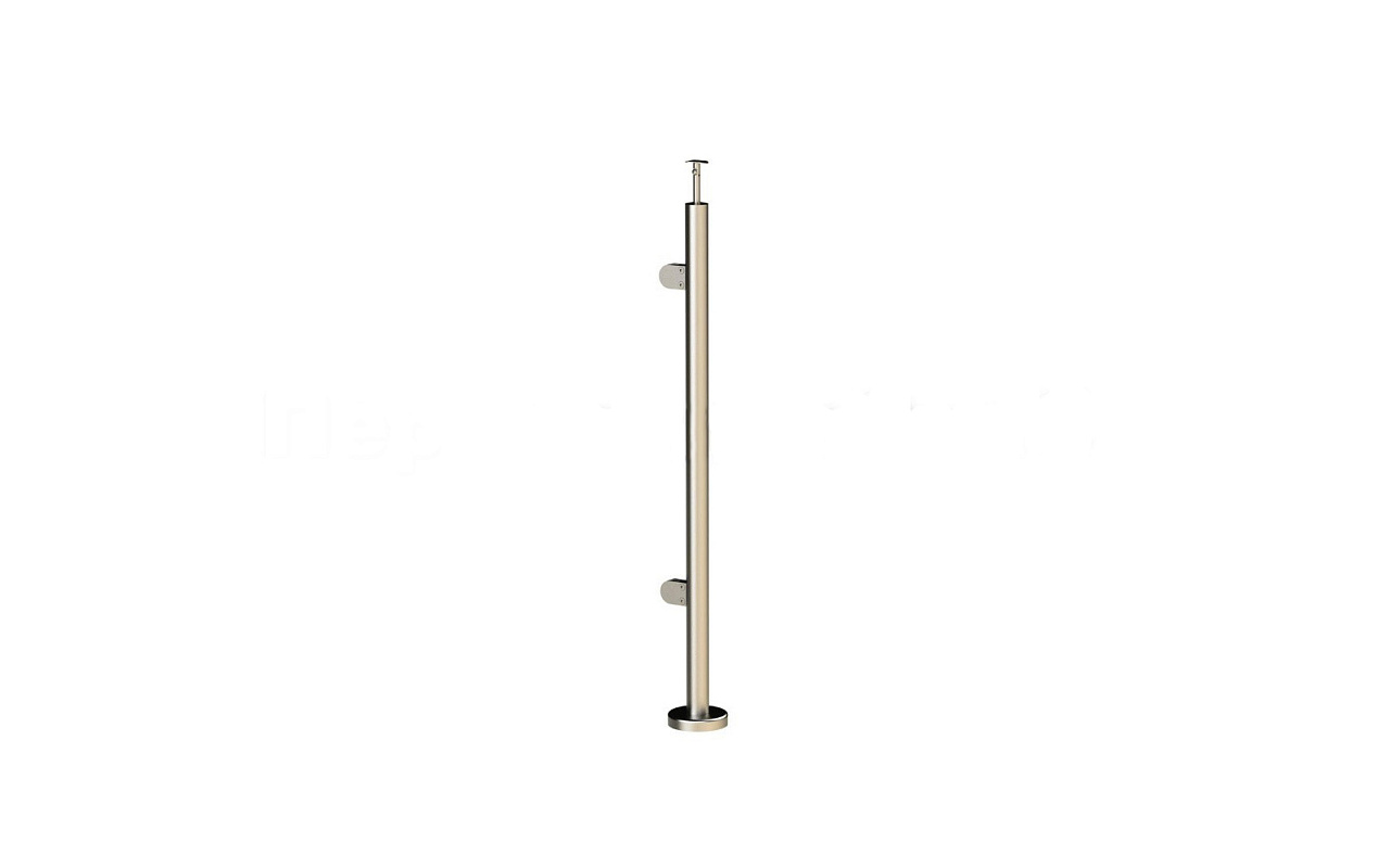 Стойка круглая Ø38.1: 2 штамп. зажимных стеклодержателя, полированная, высота 950 мм (AISI 201) k726-L