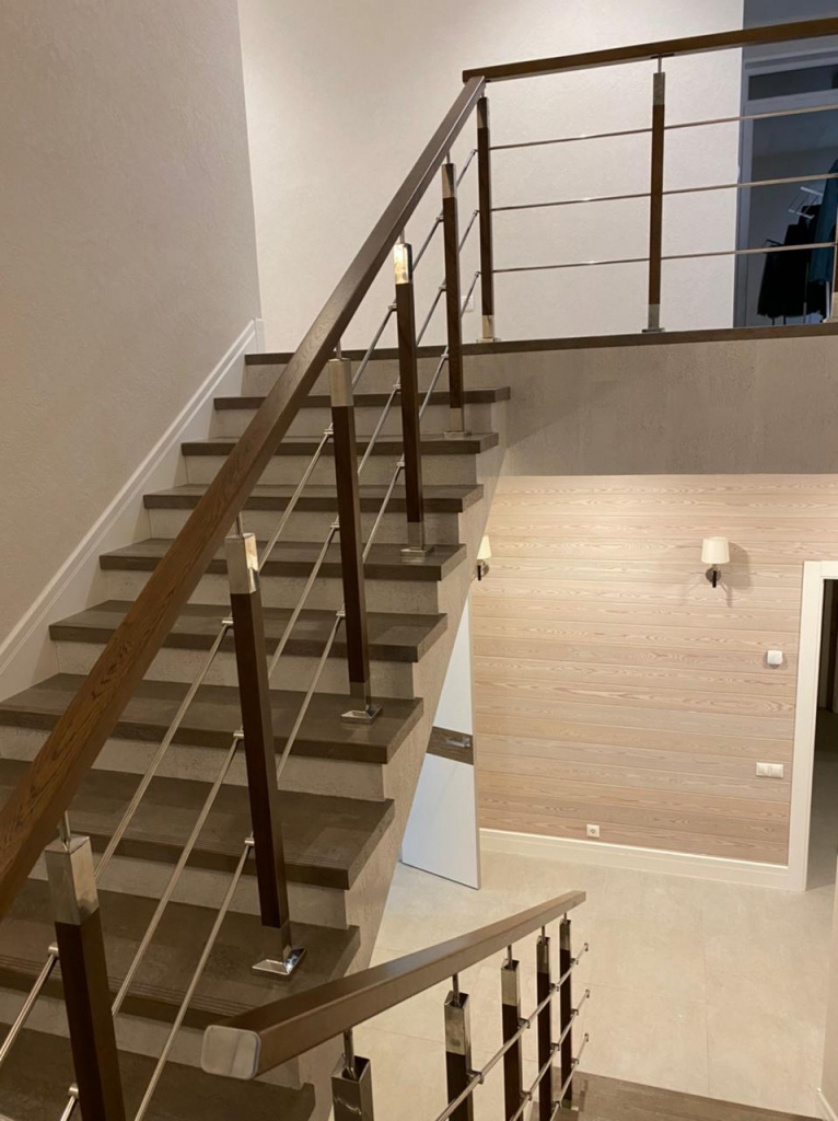 Стойка с деревянными вставками подойдет под любой дизайн благодаря тому, что Вы можете покрасить деревянную вставку в любой необходимый вам цвет. В стойке используется дубовая вставка и нержавеющая сталь AISI 304. Все элементы из нержавеющей стали приварены, заполированы и обработаны на нашем производстве. Благодаря регулируемому наконечнику стойки можно использовать как на лестничном марше, так и на прямом участке. Все элементы из нержавеющей стали приварены, заполированы и обработаны на нашем производстве. Благодаря регулируемому наконечнику стойки можно использовать как на лестничном марше, так и на прямом участке. К базовой стойке 0 прикручены ригеледержатели под 12 или под 16 леер для создания популярного трехригельного ограждения