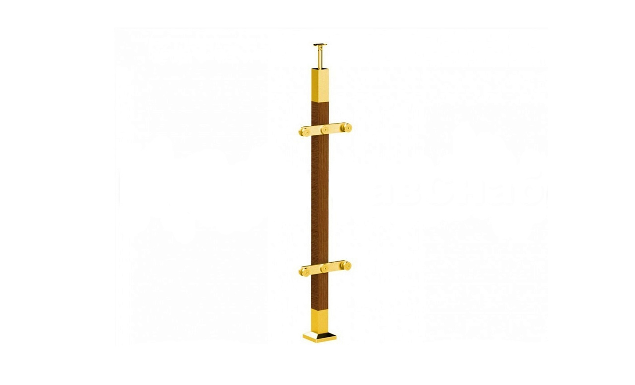 Готовая стойка 40х40х950 мм, деревянная, со вставками из нержавеющей стали 2х100 мм с 4 зажимными стеклодержателями, под золото k740-3-G купить в Волгограде