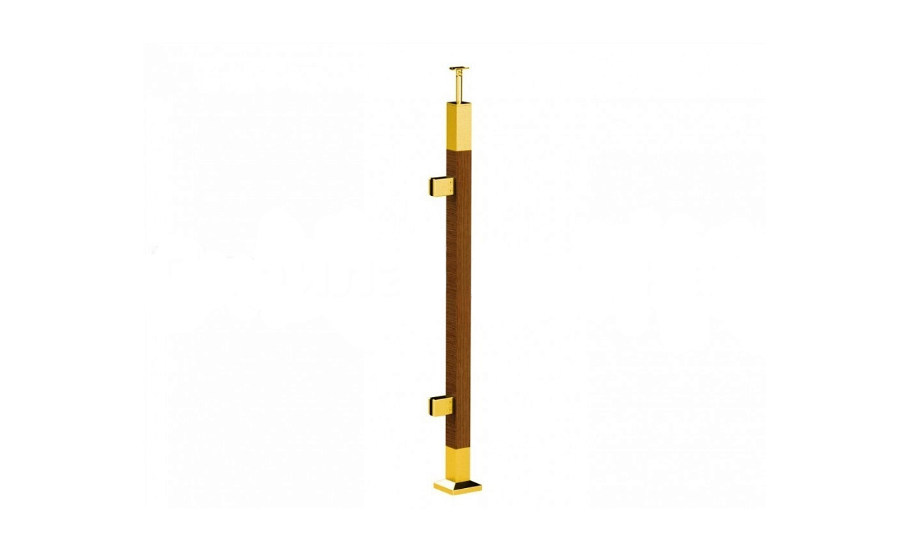 Готовая стойка 40х40х950 мм, деревянная, со вставками из нержавеющей стали 2х100 мм с 4 зажимными стеклодержателями, под золото k740-3-G купить в Волгограде