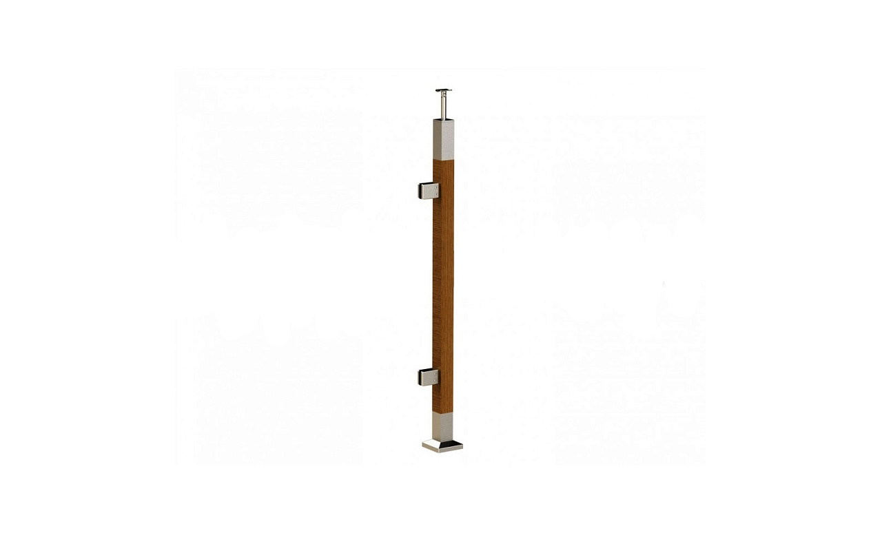 Готовая стойка 40х40х950 мм, деревянная, со вставками из нержавеющей стали 2х100 мм с 2 зажимными стеклодержателями k740-4-L