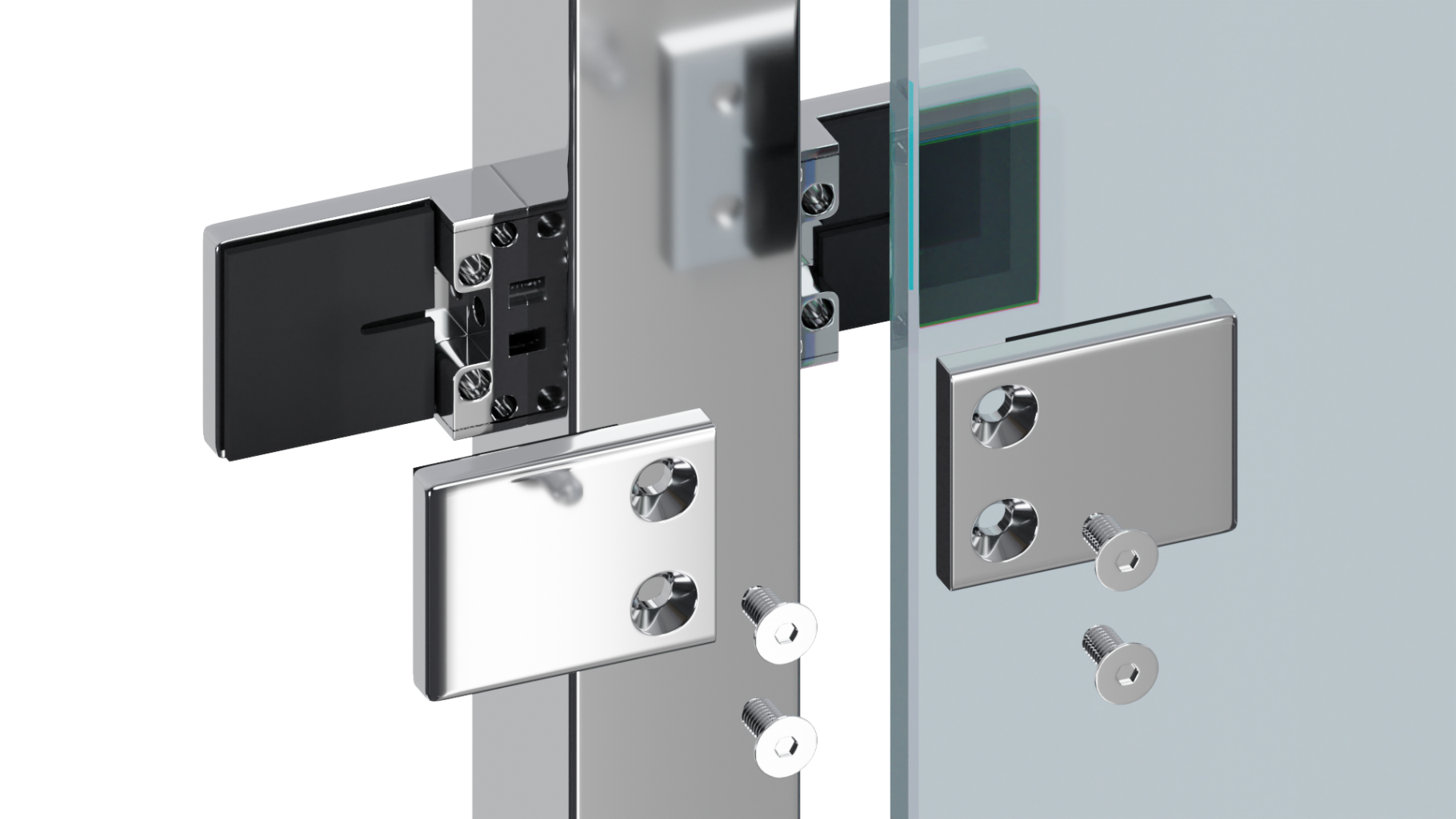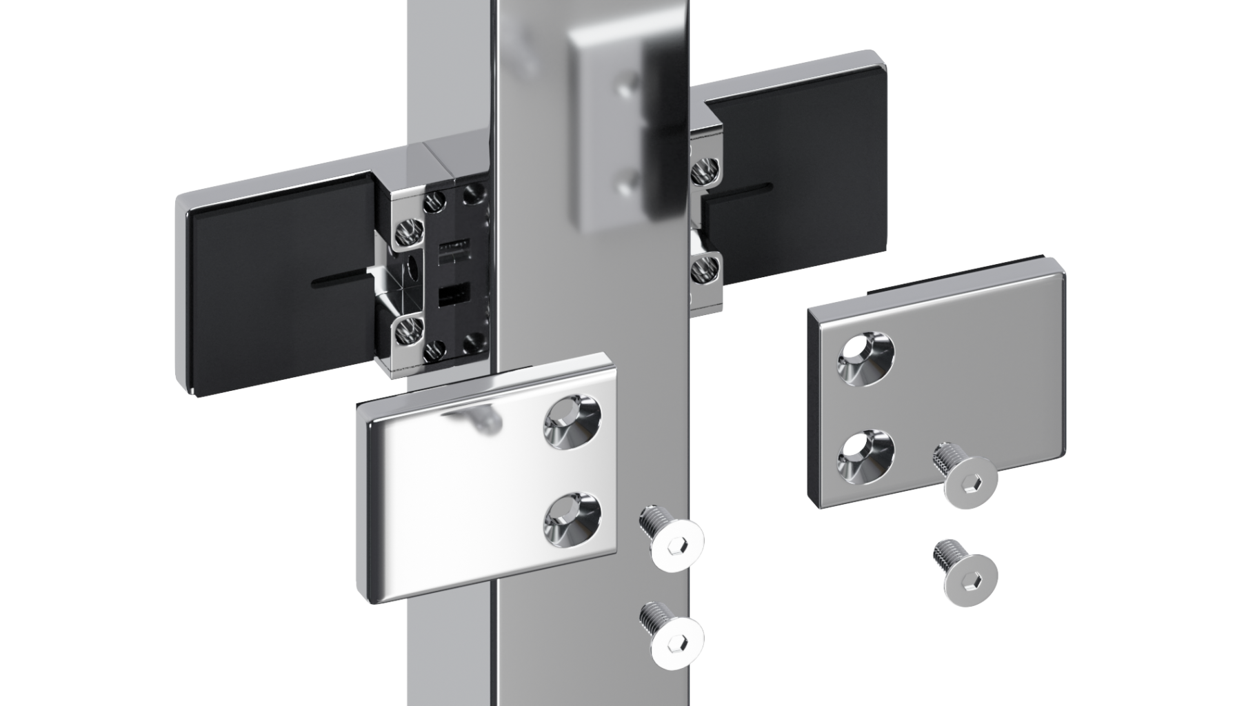 Стойка квадратная 40х40: 4 литых квадратных стеклодержателя, полированная, высота 950 мм (AISI 304) k748