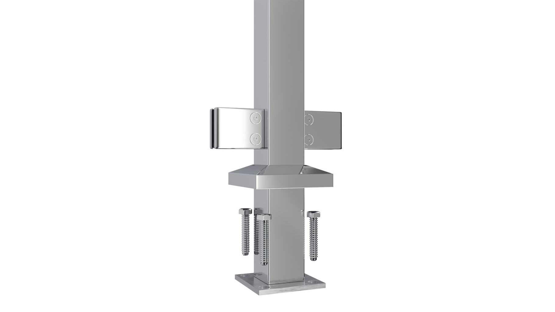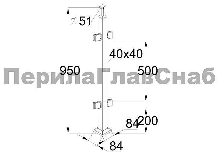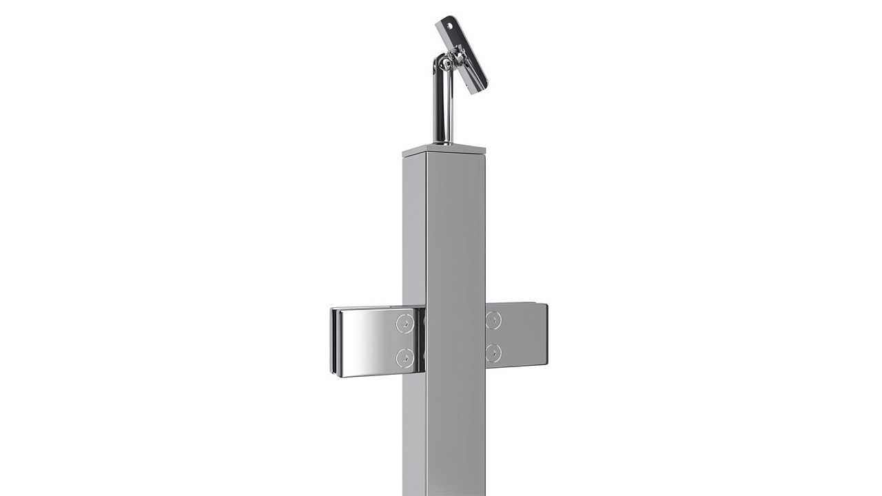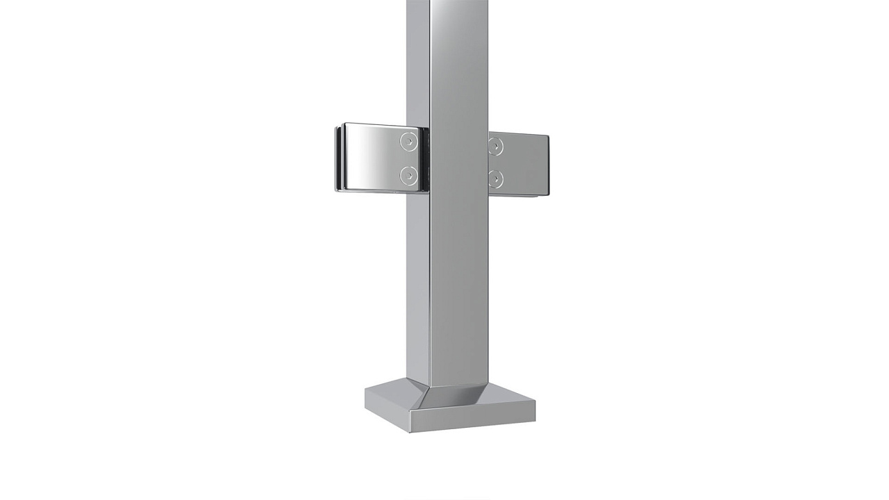 Cтойка квадратная 40х40: 4 литых квадратных стеклодержателя, полированная, высота 950 мм (aisi 304)