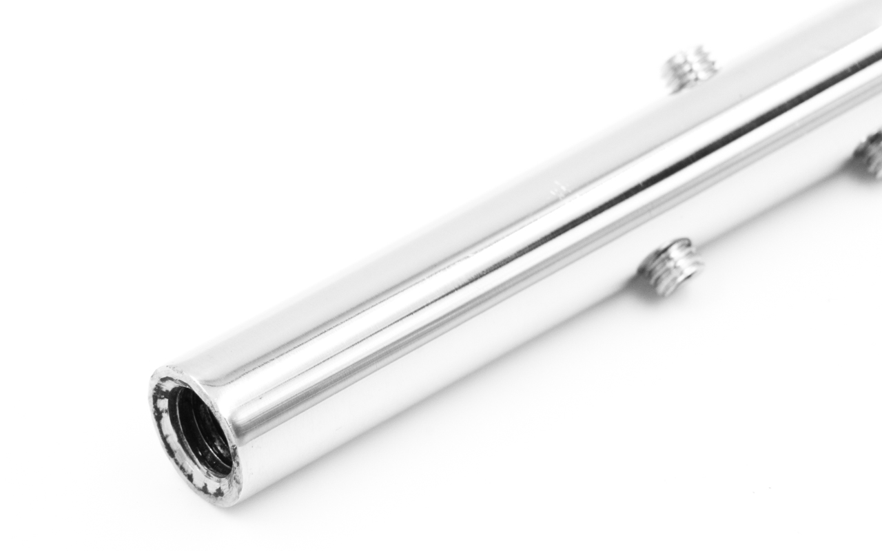 Нержавеющий держатель + натяжитель троса, литой, 80х12 мм, для троса Ø5 мм, полированный (AISI 304). Используется для крепления троса к стойкам различного диаметра, а также к плоской поверхности.