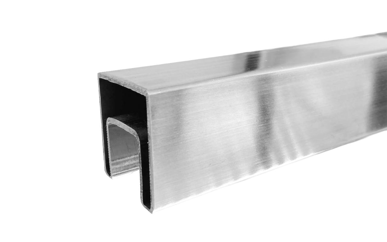 Труба 40х40 мм с пазом 24 х 24 под стекло, шлифованная, AISI201, k856-4
