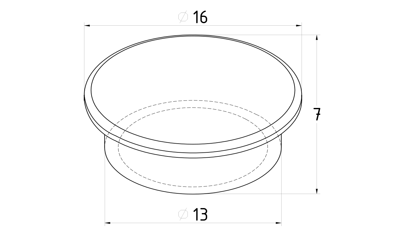 Заглушка фигурная штампованная (под клей) 16x1.5x0.5 AISI 304 полированная k200-5