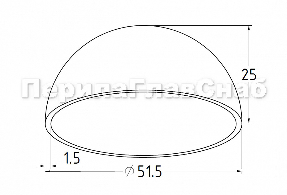 Заглушка сферическая сварная для трубы Ø50.8х1.5 мм полированная (AISI 304) k556