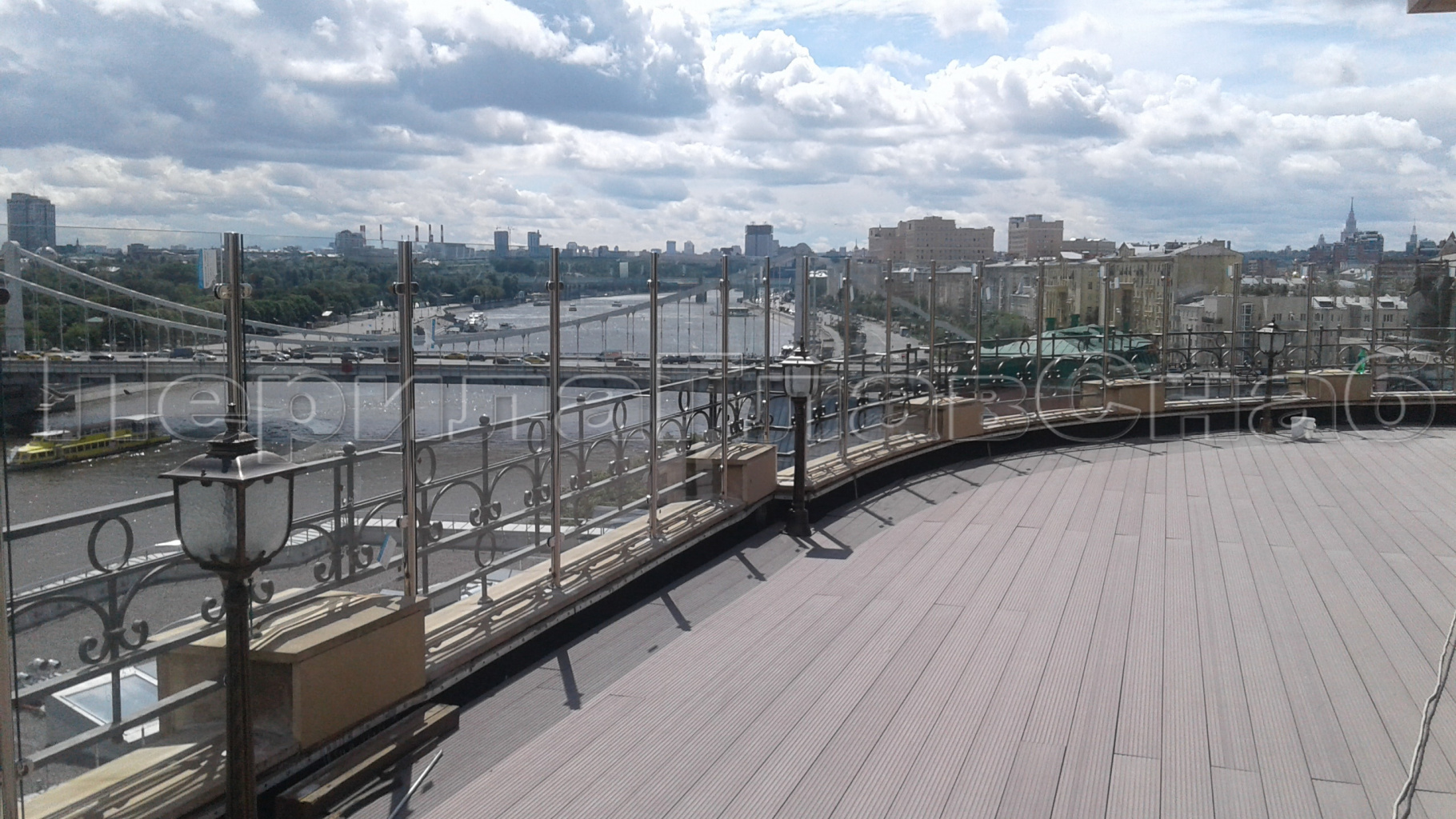 Ветрозащитное ограждение без стоек, на точечном креплении в торец
